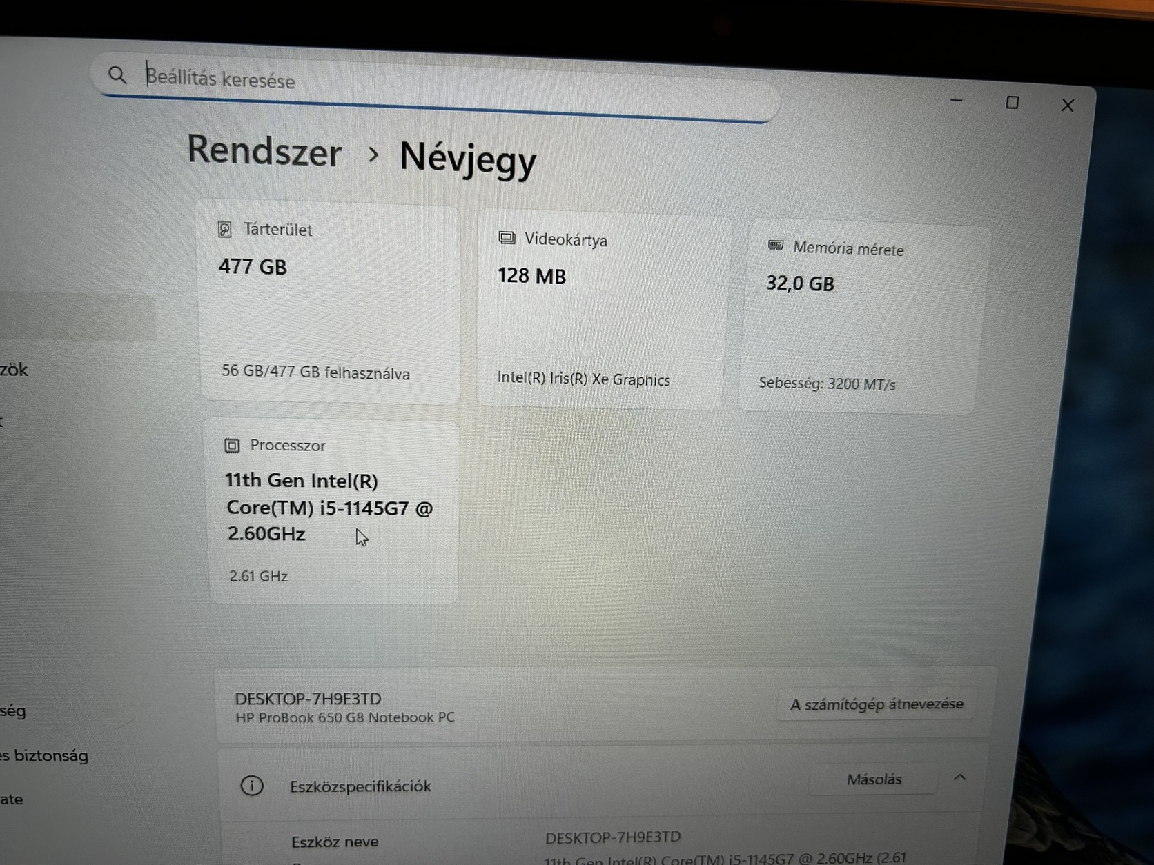 HP ProBook 650 G8 Notebook i5-1145G7 CPU, 32GB RAM, 512 GB SSD
