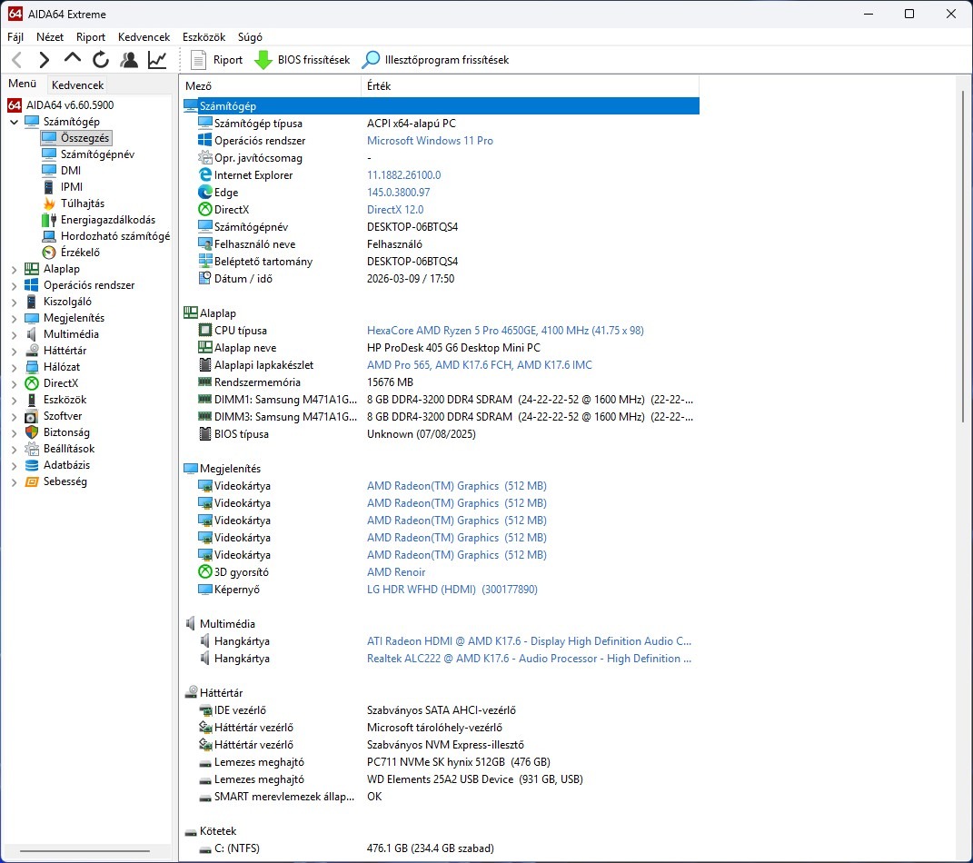 HP Prodesk 405 G6 Mini PC / AMD Razen 5 Pro 4650GE / 16GB DDR4 / 500GB Nvme / Win11