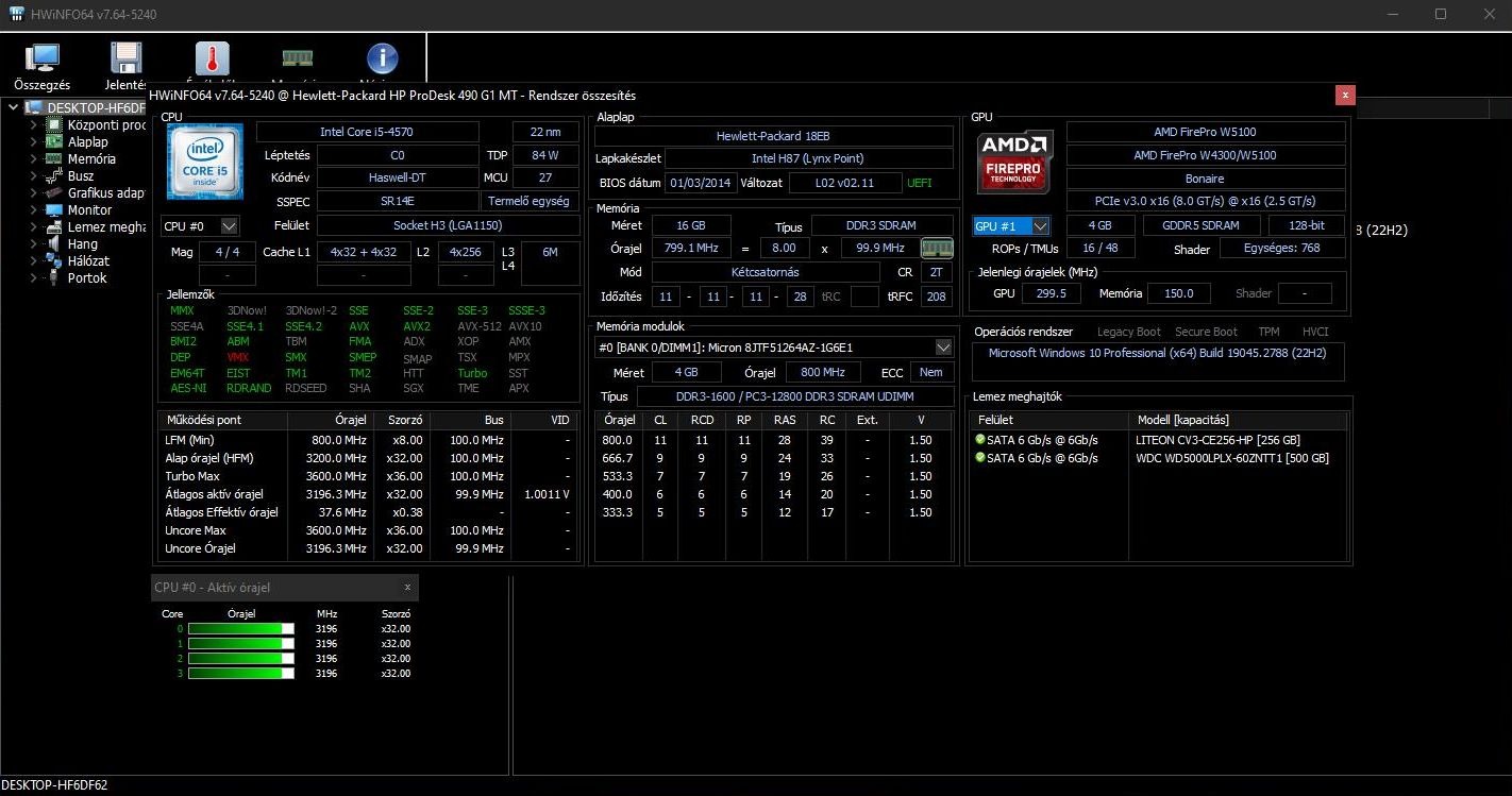 CPU: Intel® Core™ i5-4570 Processor (6M Cache, up to 3.60 GHz)