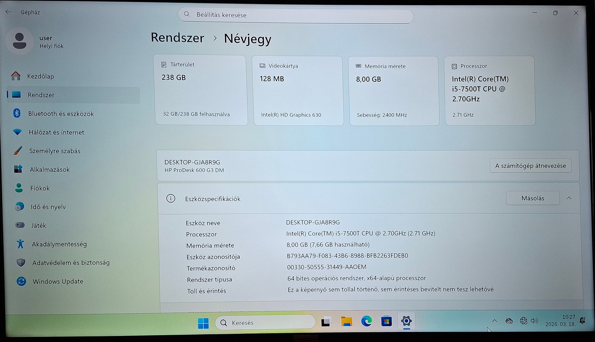 - Videokártya: Intel HD Graphics 630