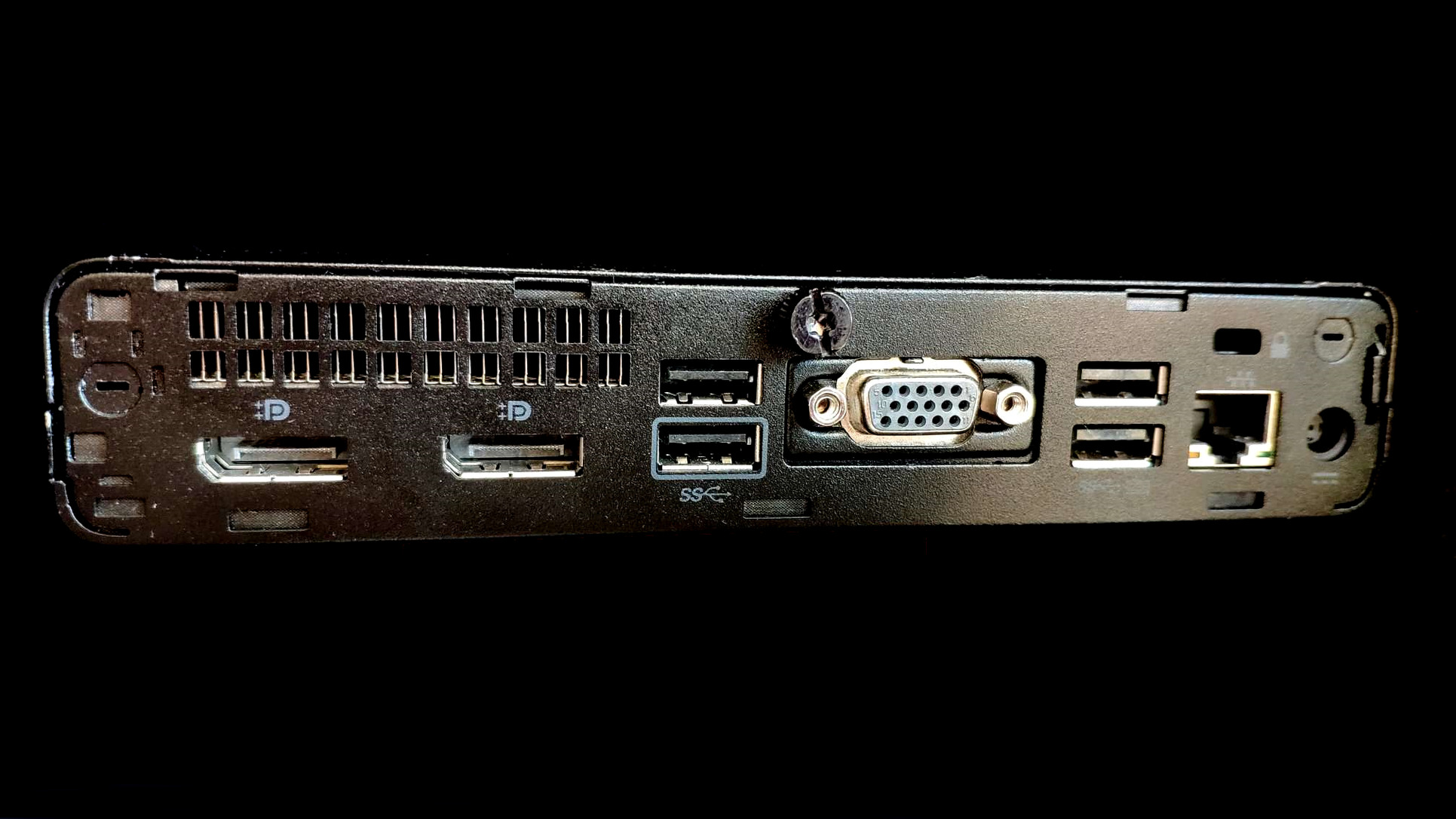 2 db Display port és egy VGA port, USB A és USB C és Jack aljzatok