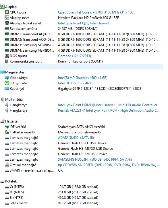 CPU: intel i7 4770S 4mag 8szál