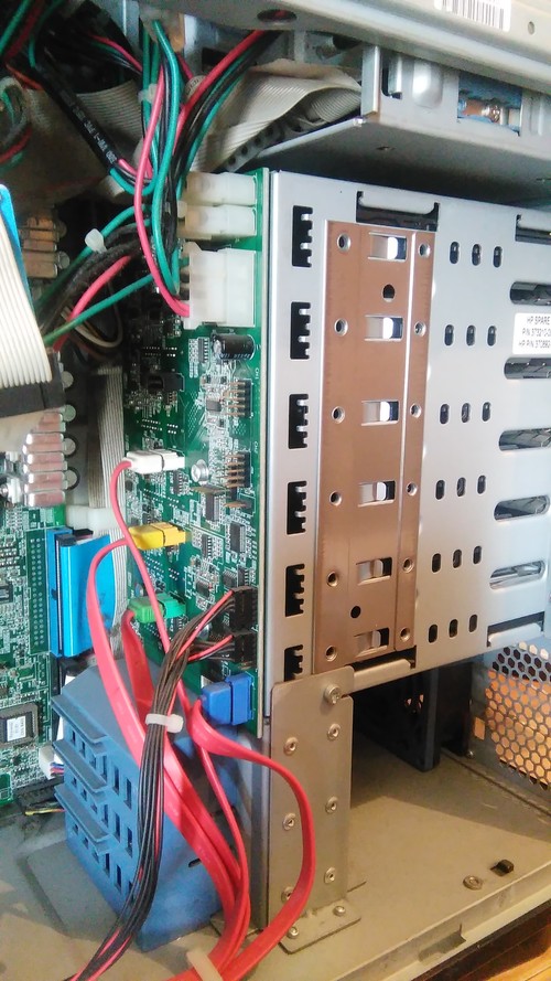6-os hot swap sata fiók van a házban és egy PCI-X-es 4-es sata bővítő kártya. A háznak az elejét le kell venni, hogy a hot swap-et lehessen használni.