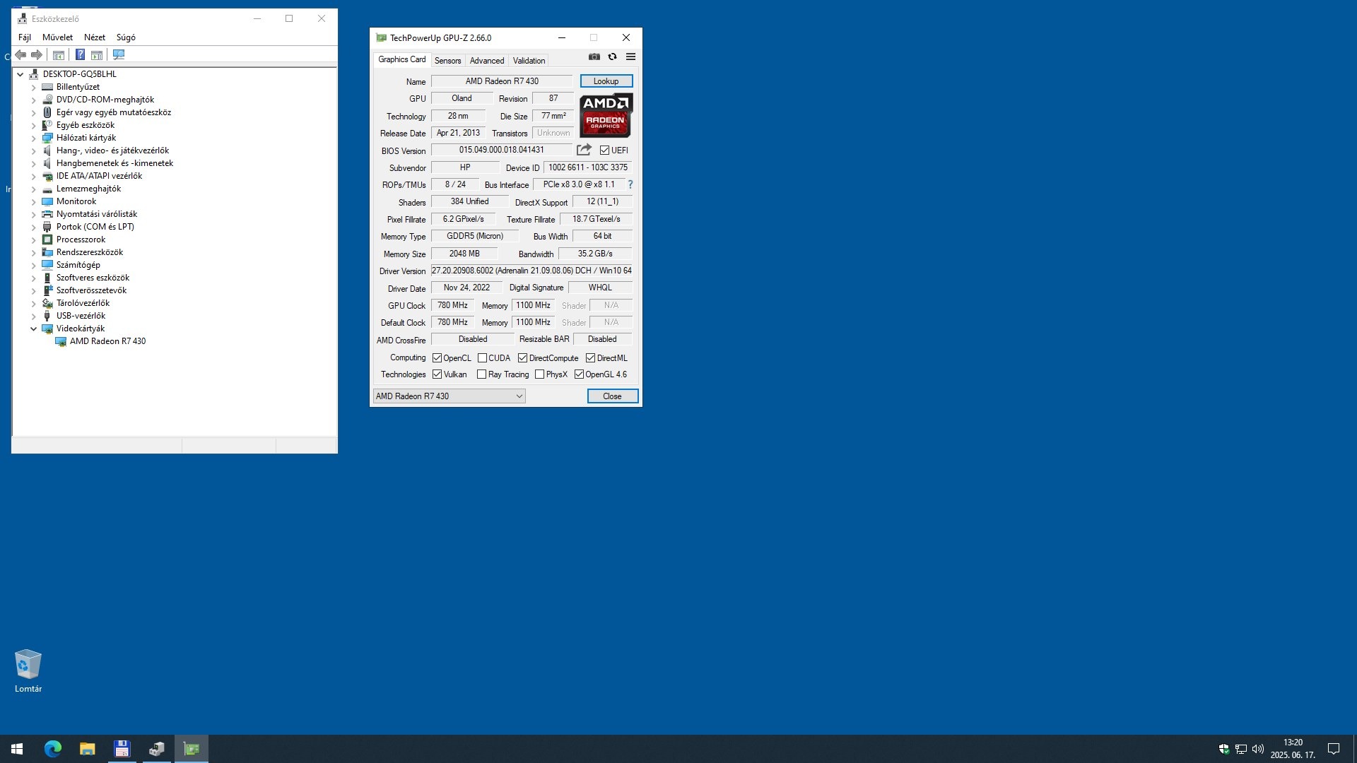 HP Radeon R7 430 2GB LP videokártya