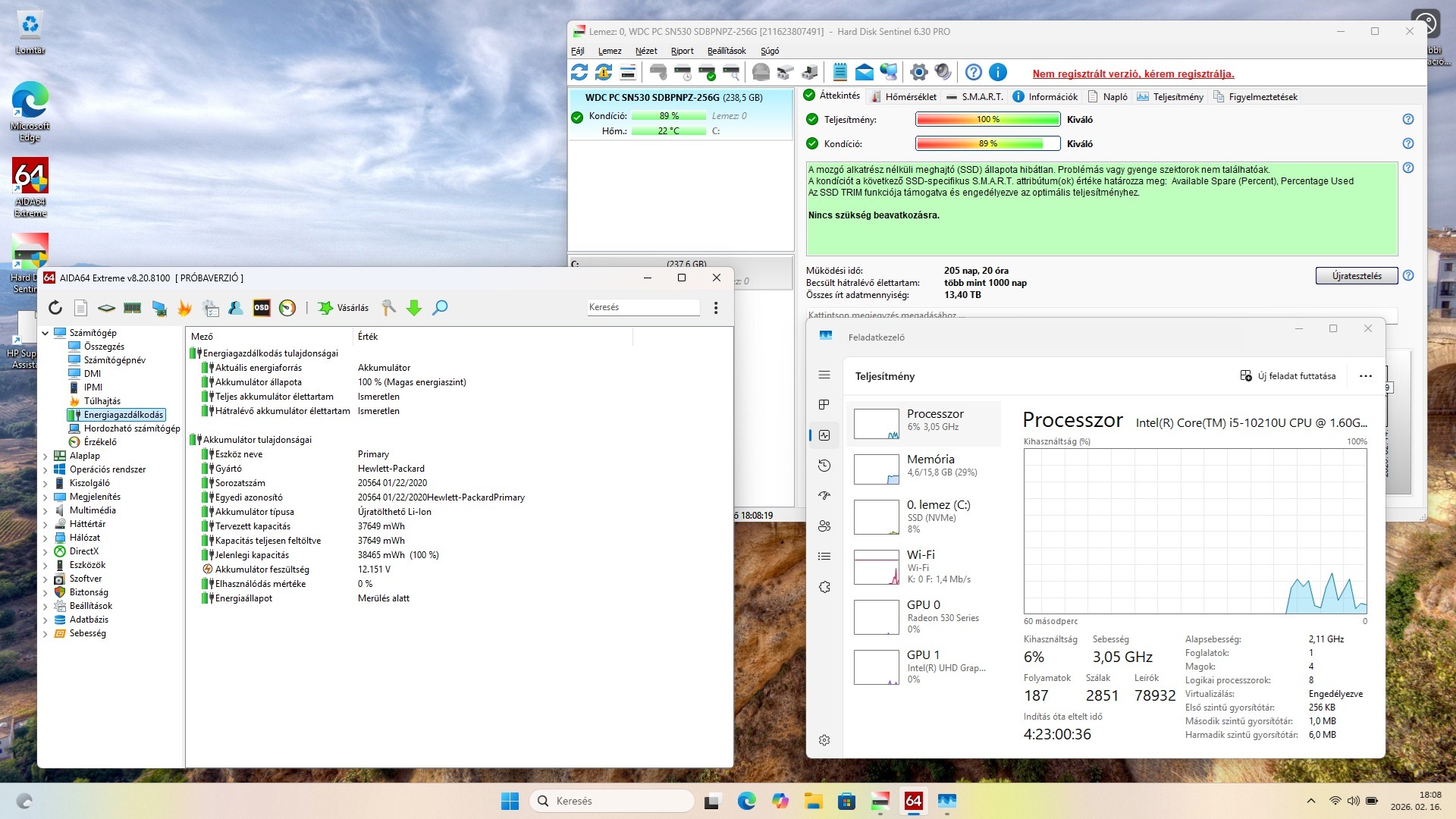 GPU: radeon 530 dedikált és intel integrált