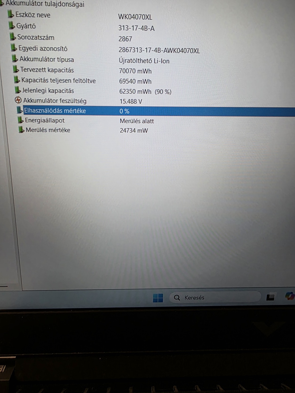 Akkumulátor: 100% állapot