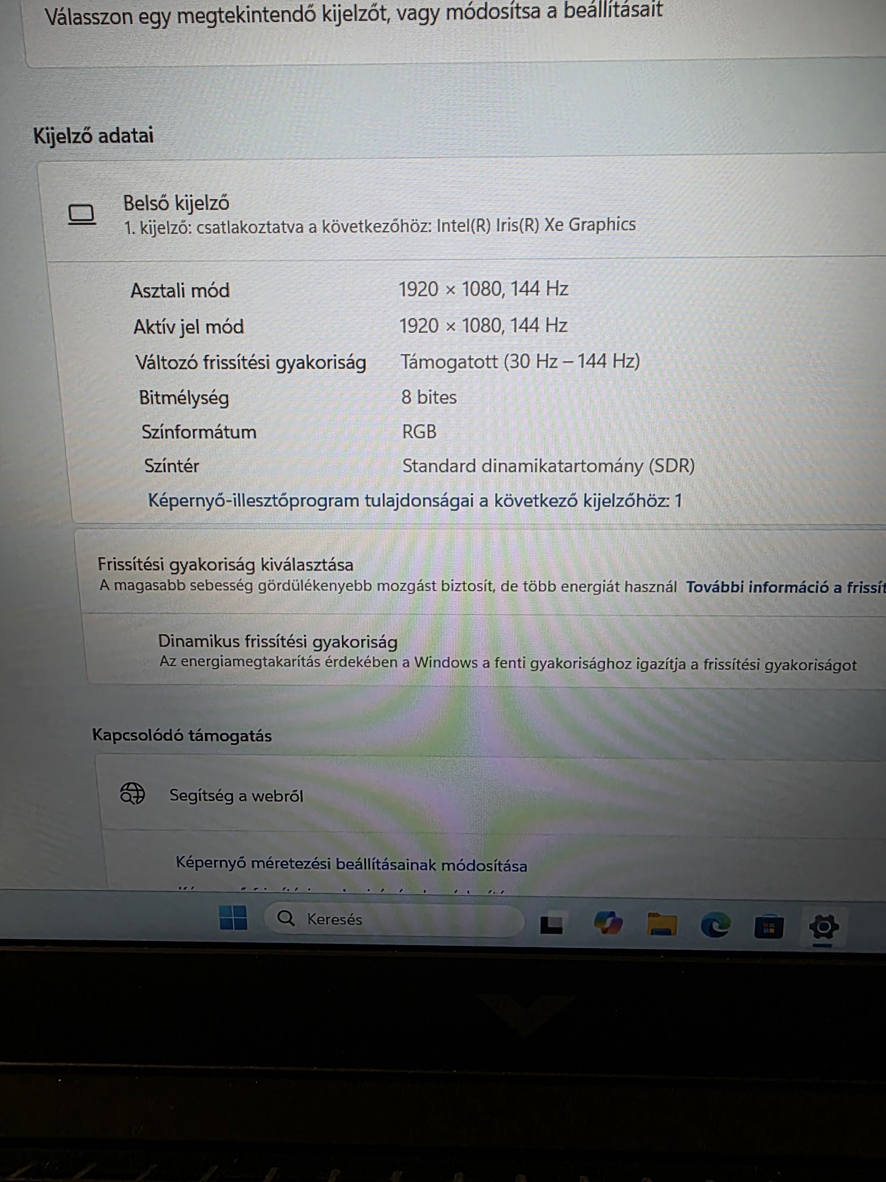 Kijelző: 16.1″ Full HD (1920×1080), 144 Hz