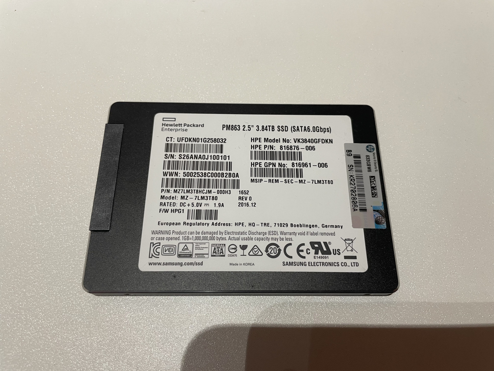 Jegelve – HPE Samsung PM863 3.84TB 2.5'' Sata SSD