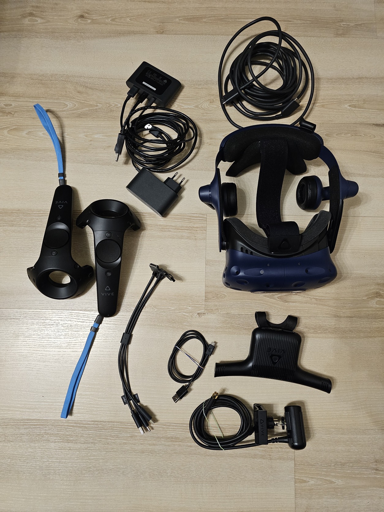 Szép állapotú vive pro szett 2 kontrollerrel, minden kábelével, vezeték nélküli adapterrel, bázisállomások nélkül.