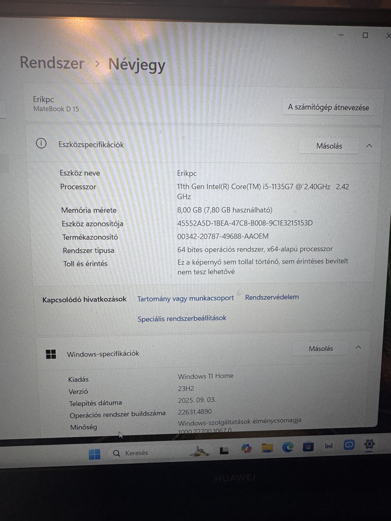 Eladásra kínálom újszerű állapotban lévő Huawei MateBook D15 laptopomat.