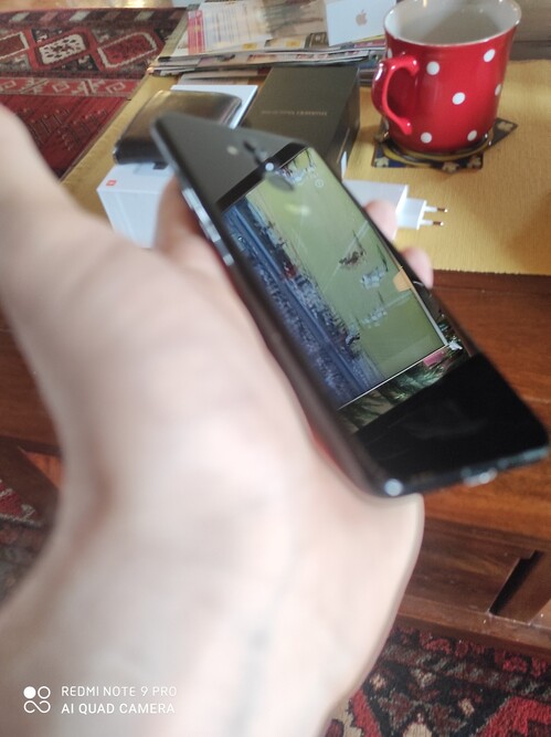 A gyári védőfólia van rajta, amin nehány karc található, ezt leszámítva a két oldalán van 1-1 apró pötty, amit fotóztam. Átlátszó szilikontok jár hozzá.