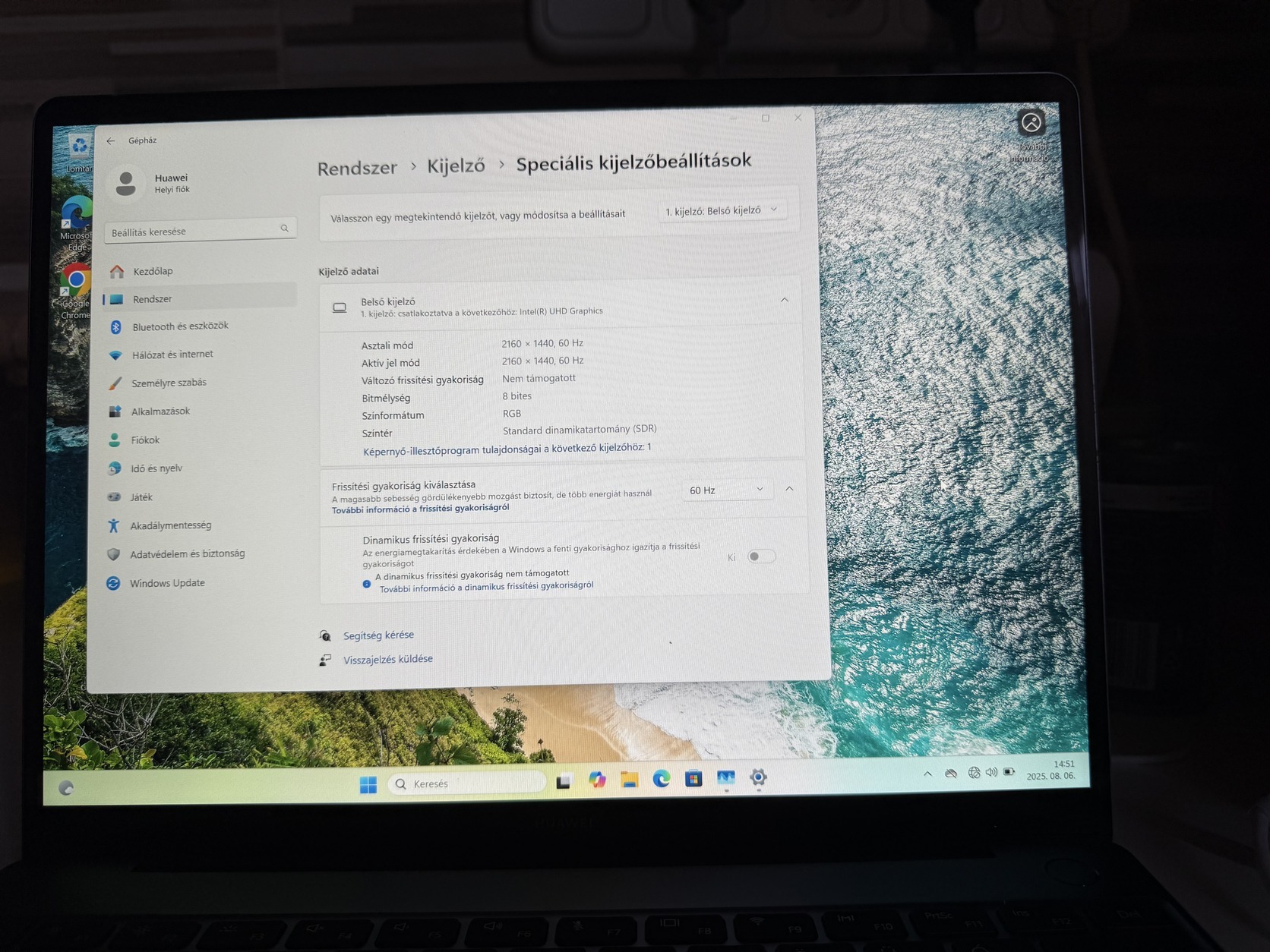 Kijelző: 13” 60 Hz (2160 x 1440) 2K