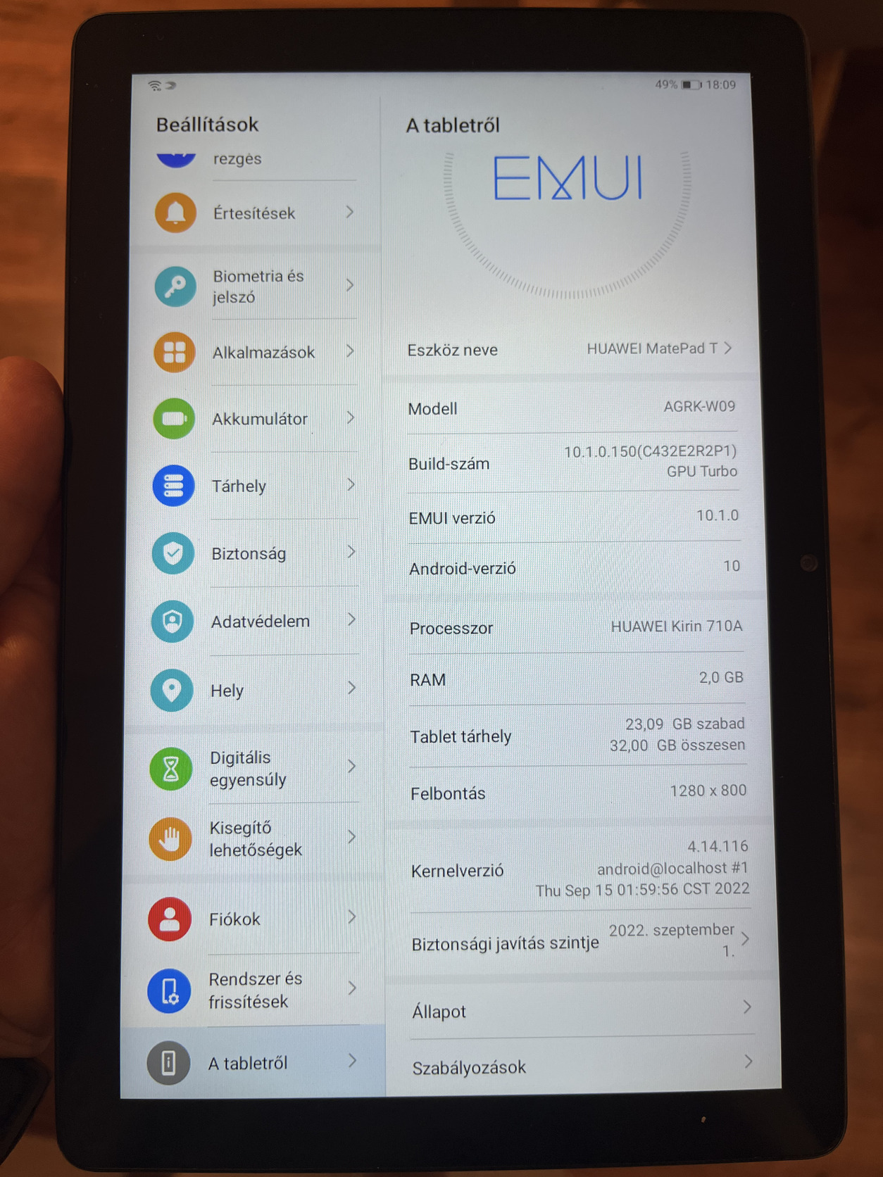 Eladó a képeken látható Huawei MatePad T AGRK-W09 készülék kihasználatlanság miatt. A kijelzője és hátlapja teljesen karcmentes. Minimális, használatból eredő kopások a csatlakozóknál láthatóak.
