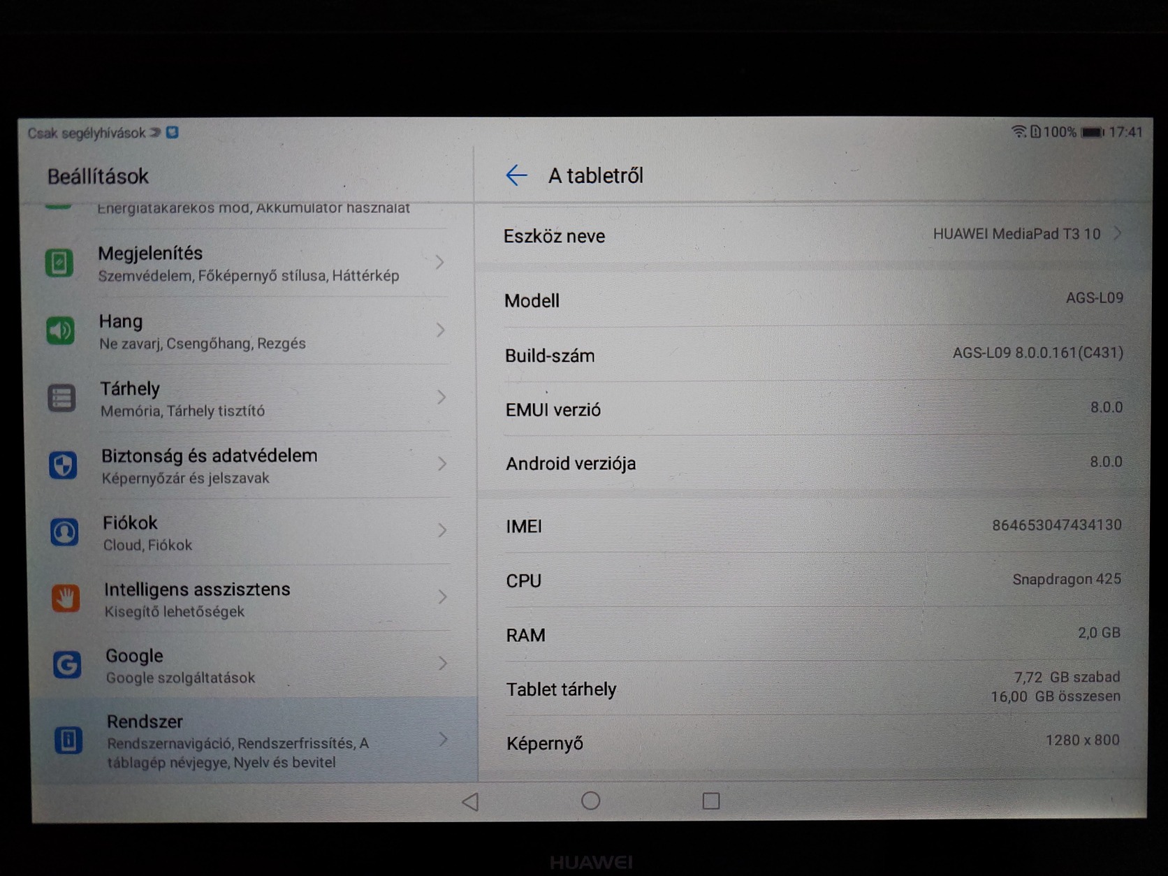 Típus: Huawei MediaPad T3 10