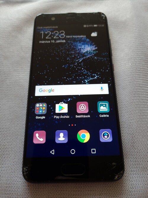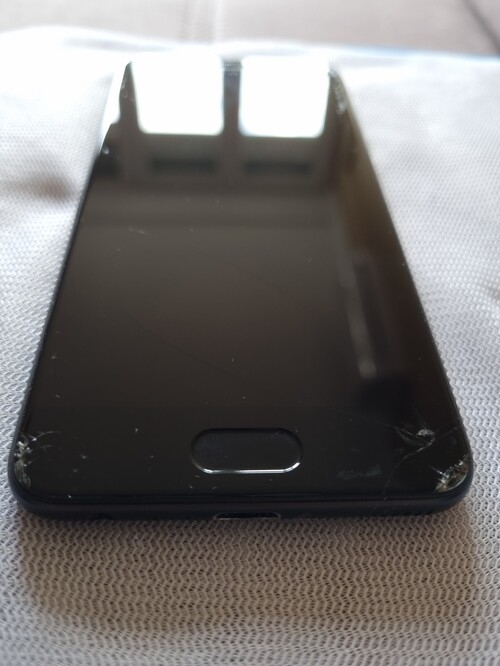A telefon hátlapja és oldala karcos, a kijelző pedig repedt és 3 sarkán törött. Igyekeztem lefotózni. Meglepő módon a kijelző, az érintő és az ujjlanyomat olvasó működik. Viszont a fényképező nem százas, mert homályos képeket csinál.
