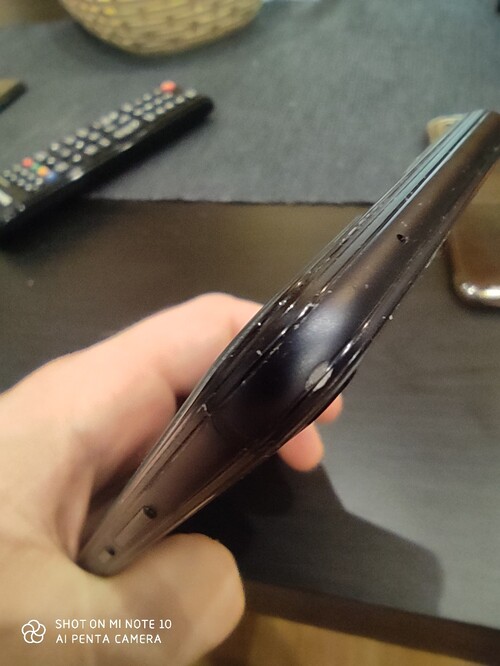 Fekete színű. Sarkánál egy kis leverődés van. Törött üvegfólia van rajta, ezt csak le kell venni róla. Töltőfej kicsúszik belőle, így csak akkor tölthető, ha le van téve.