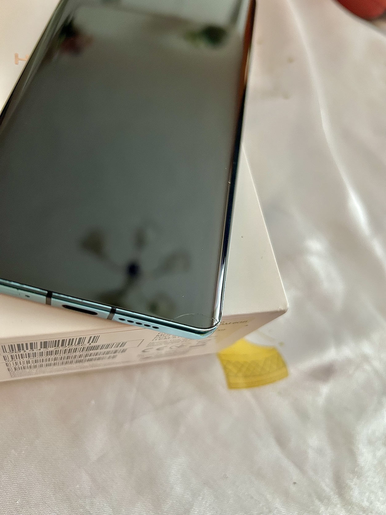Jobb alsó sarokban minimális kis hajszálrepedés ,ami nem zavaró és észrevétlen , működésben nem gától ( fotóztam ) .