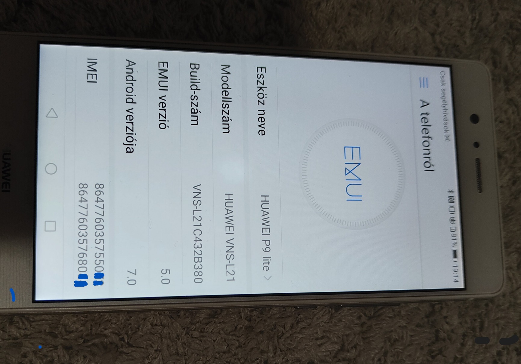 Eladó egy kitűnően működő Huawei P9 Lite hálózatfüggetlen mobilkészülék.