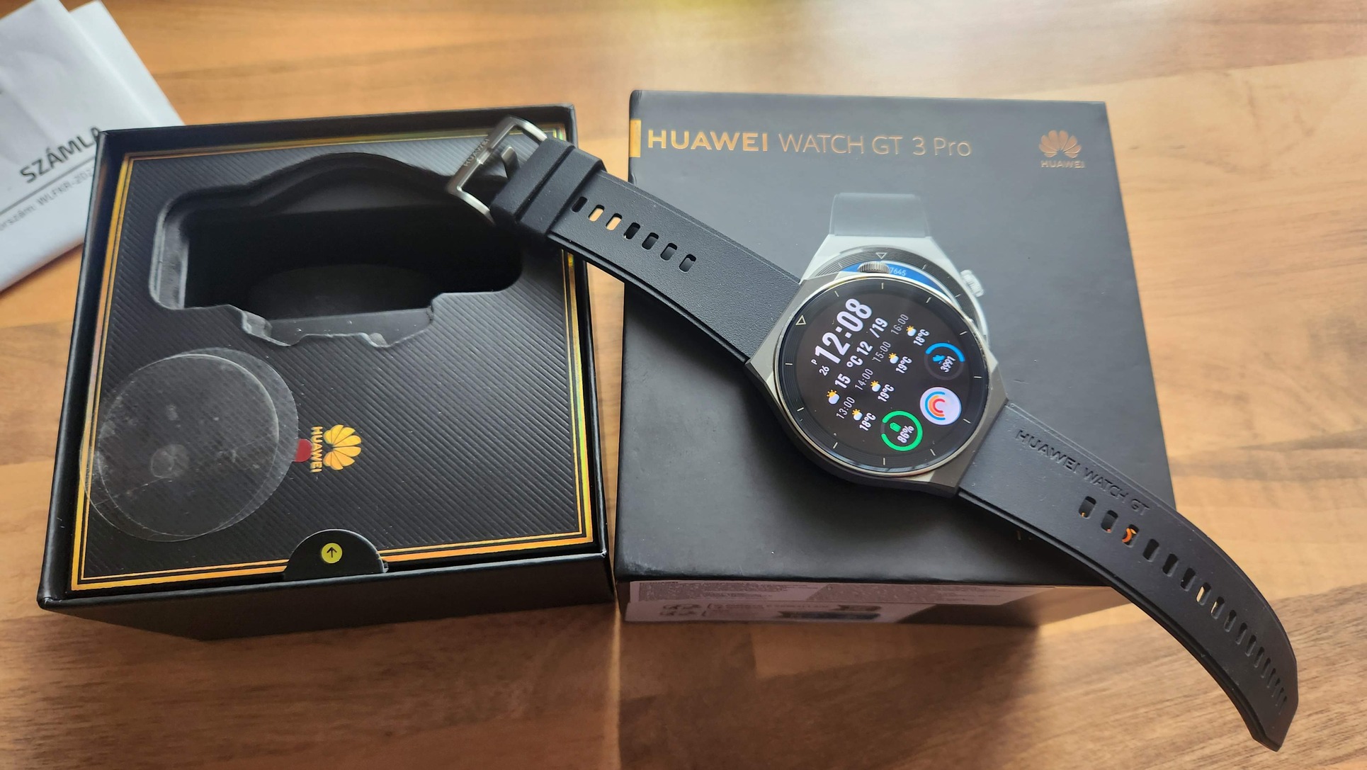 Próbából vettem, nem ismertem a Huawei órákat. Nos, elég nagy hibát követtem el eddig, úgy tűnik... Messze a legnagyobb pozitív csalódásom. Annyira, hogy vettem egy számomra még kiemelkedőbb Huawei órát, ezért ez eladósorba került. teljes dobozában pompázik, én gyárias állapotban látom. Ha megtalálom, van hozzá tokvédő is valahol, azt is csomagolom mellé.
