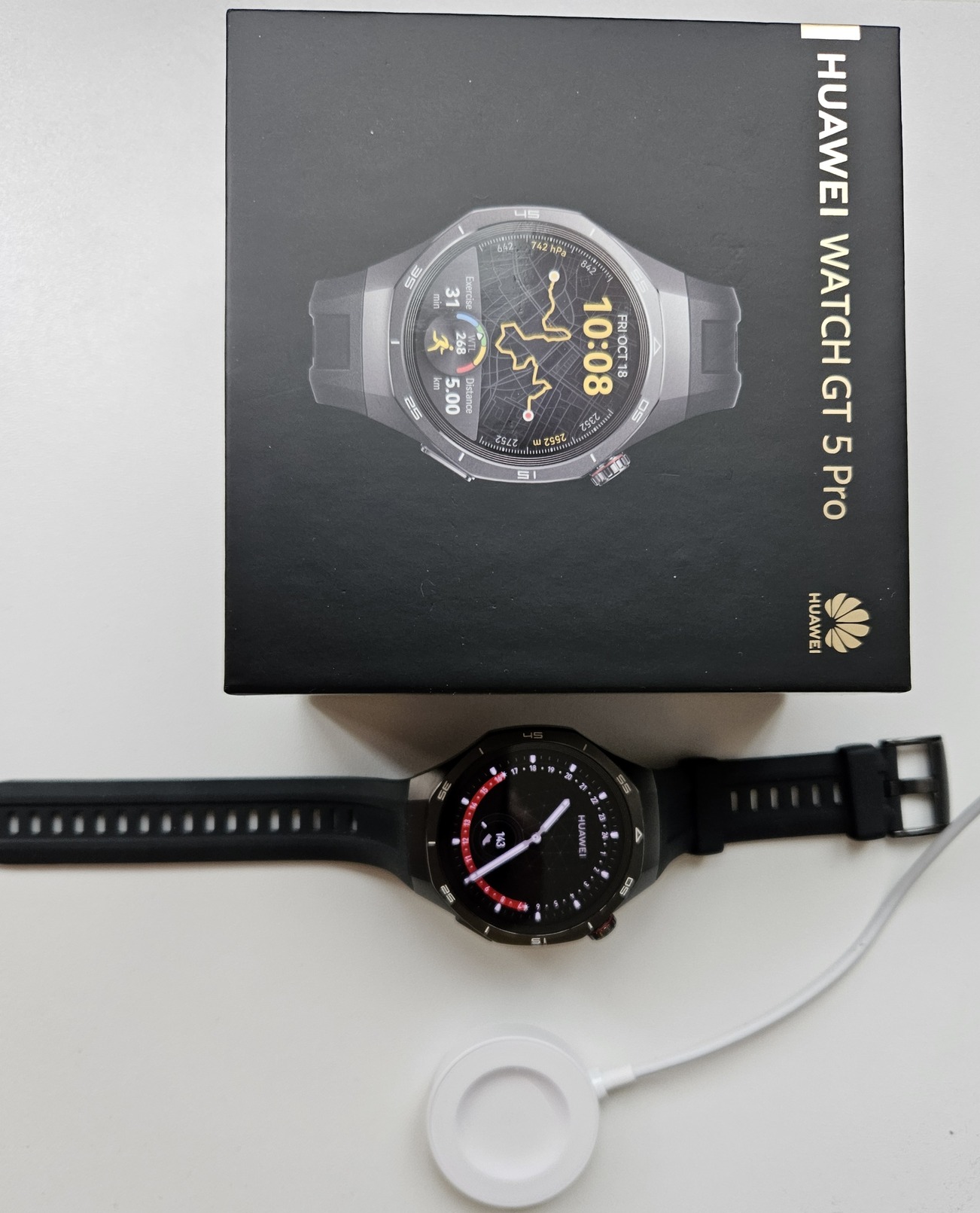 Eladó Huawei Watch Gt5 pro 46mm fekete színben, dobozában minden tartozékával.