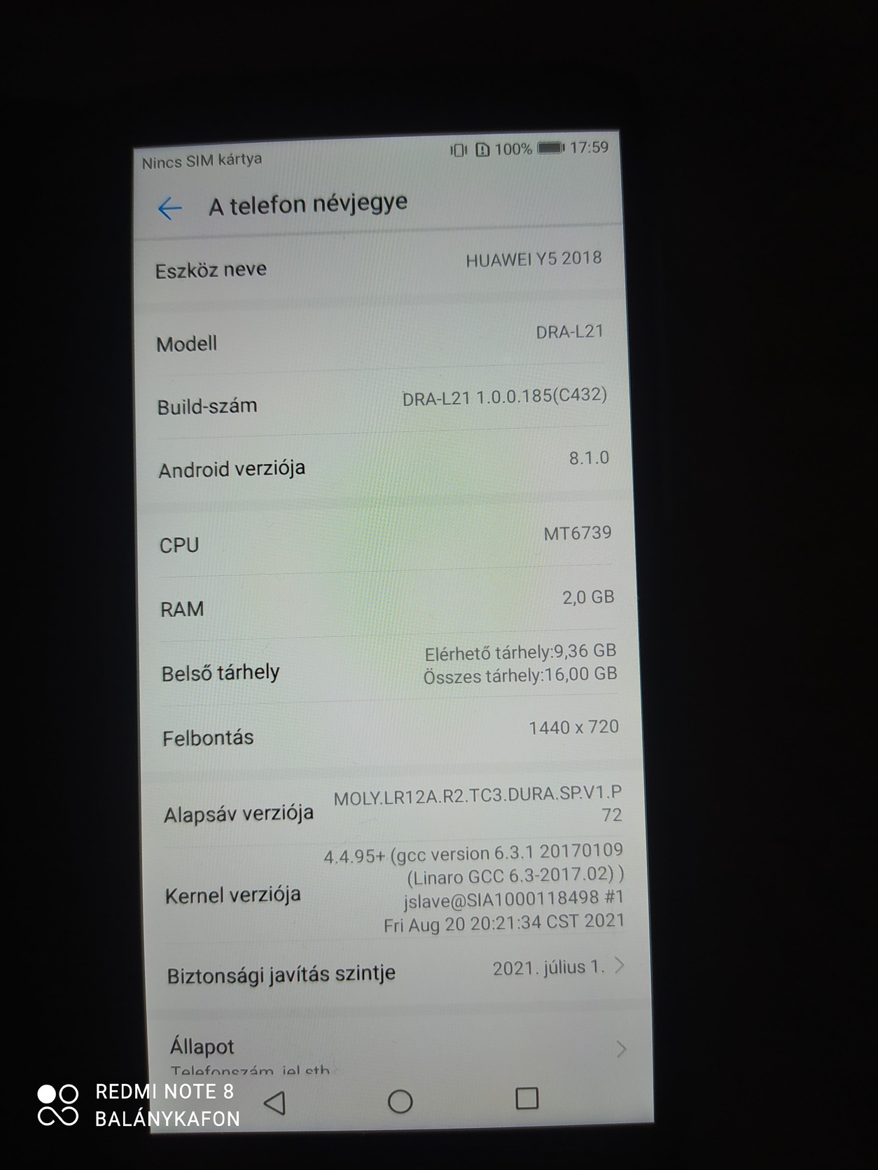Eladó a képeken látható Huawei Y5 2018as okostelefon