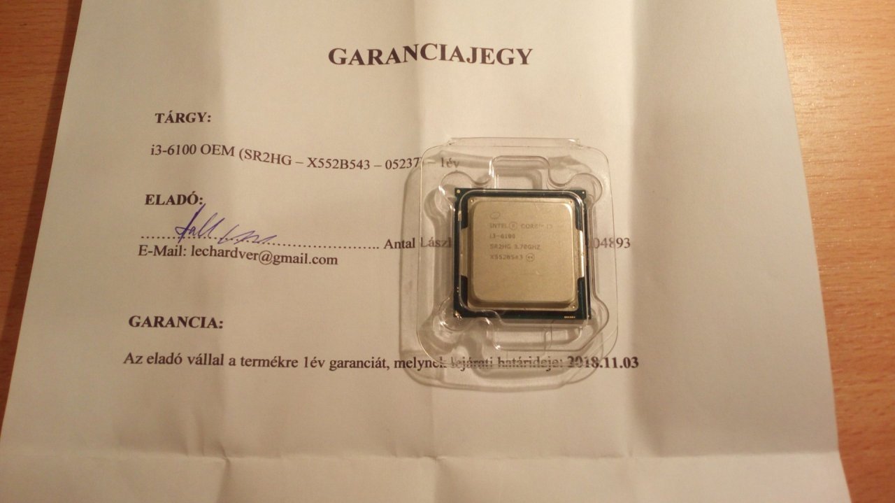i3-6100 .Elkelt. Értékelésre vár.