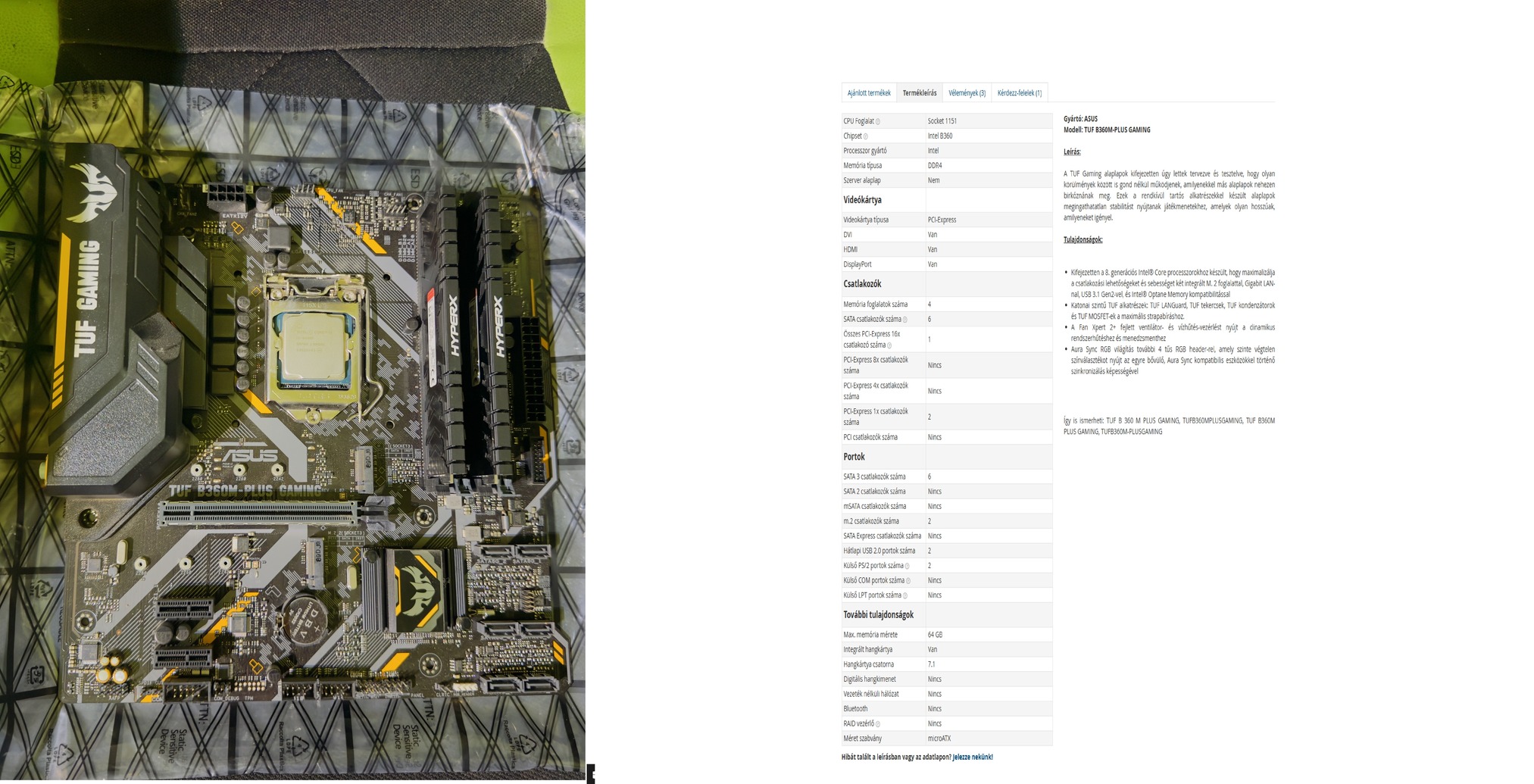 Eladó a képeken látható alaplap,memória, proci,hibátlanúl működik csak játékra volt használva.