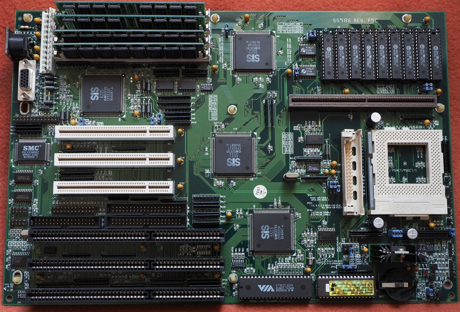 SS586 Rev. P5C (? Spring Circle Inc. ?), SIS 5511/5512/5513, Socket 7, FSB 50/60/66 MHz alaplap