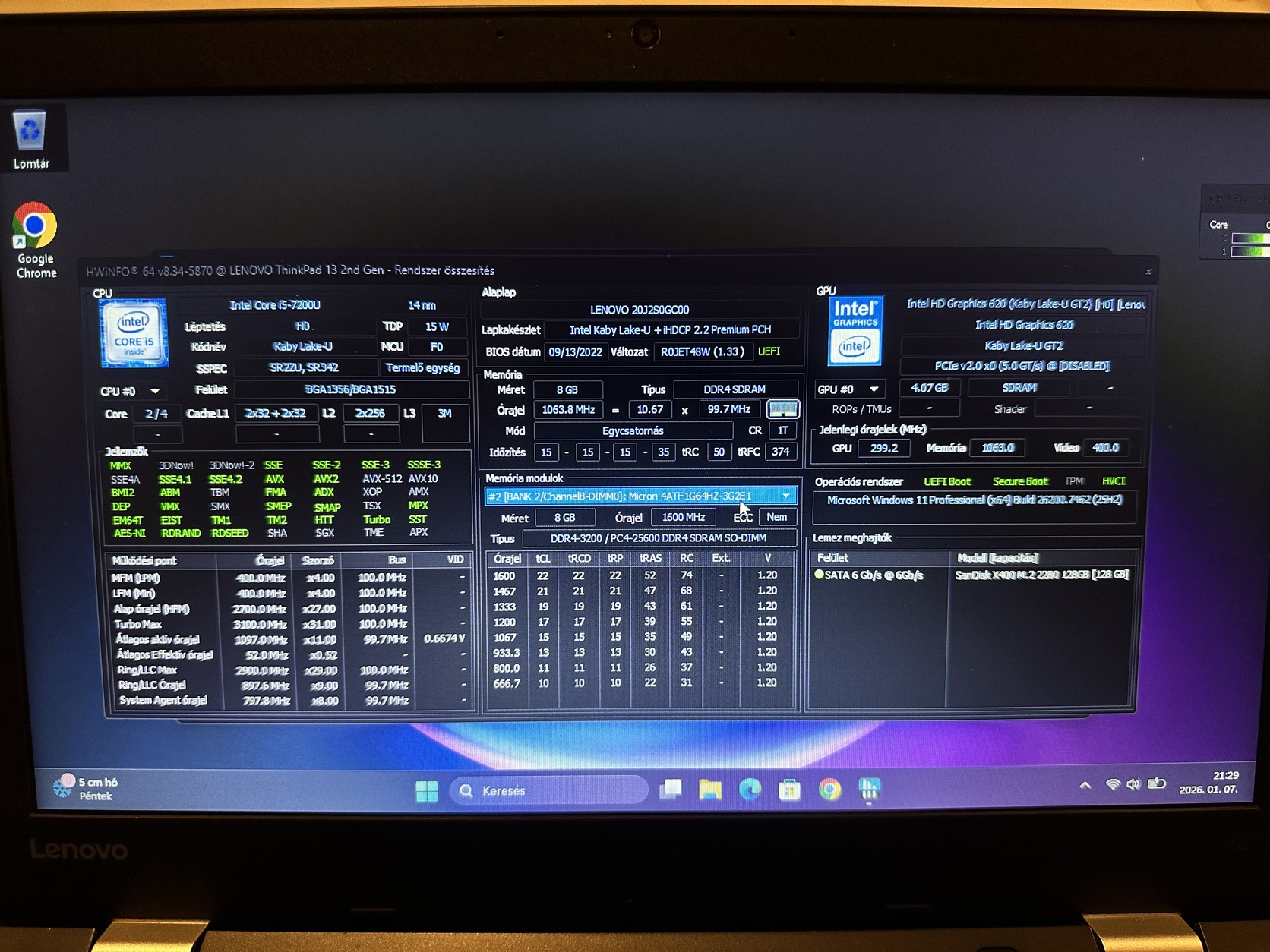 i5-7200u, 13,3" HD kijelző, 8GB DDR4 RAM, 128GB M.2 SSD