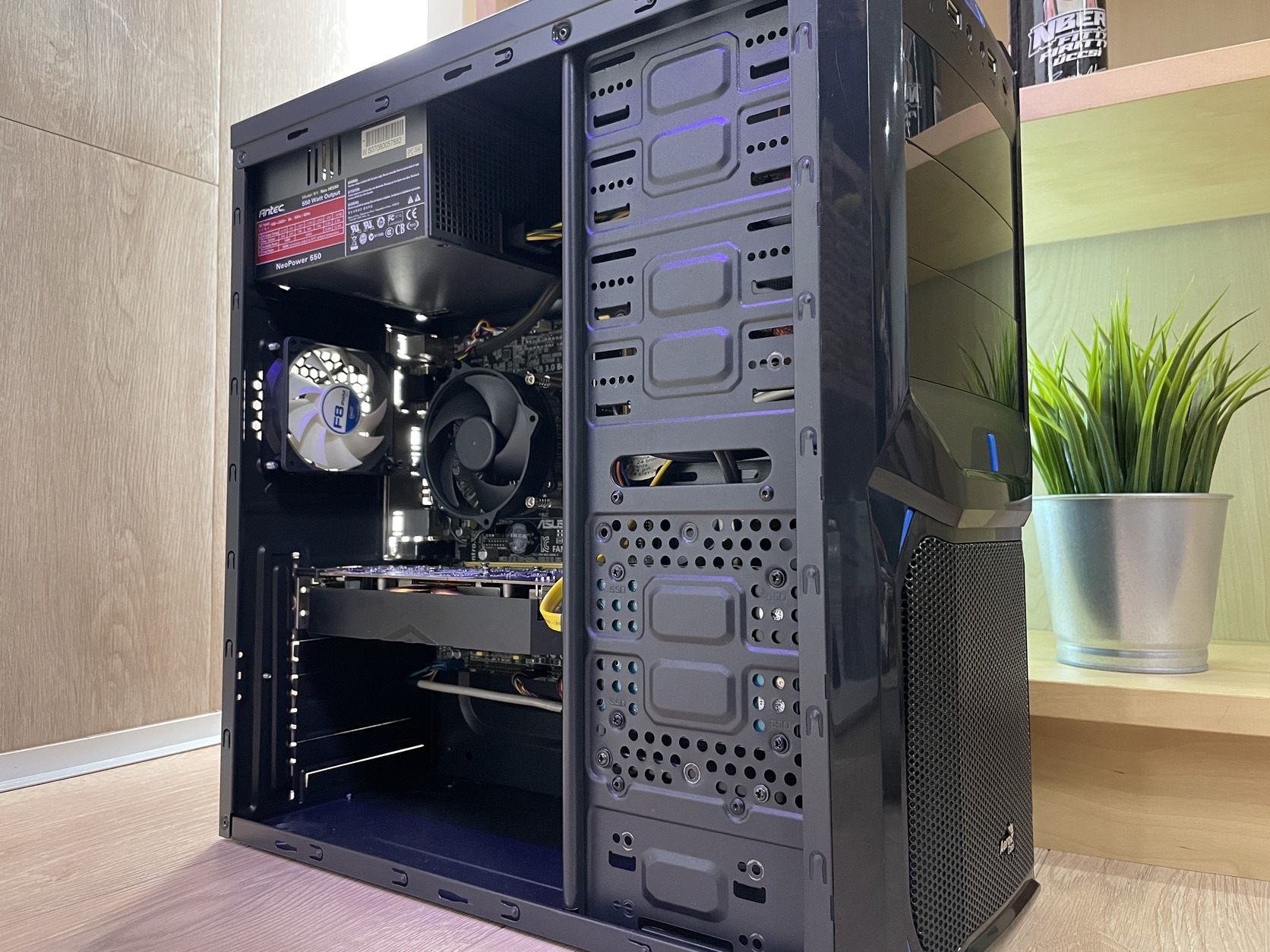 - AeroCool V3X gépház (elől 1db 12cm-es, hátul pedig 1db 8cm-es ventilátorral)