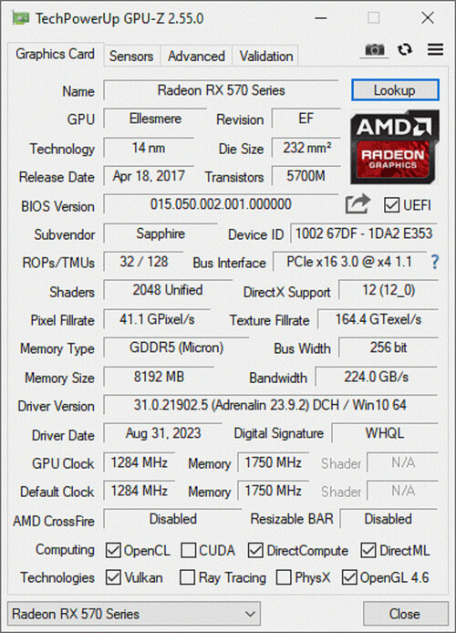 - Videokártya : Sapphire PULSE RX 570 OC 8 GB