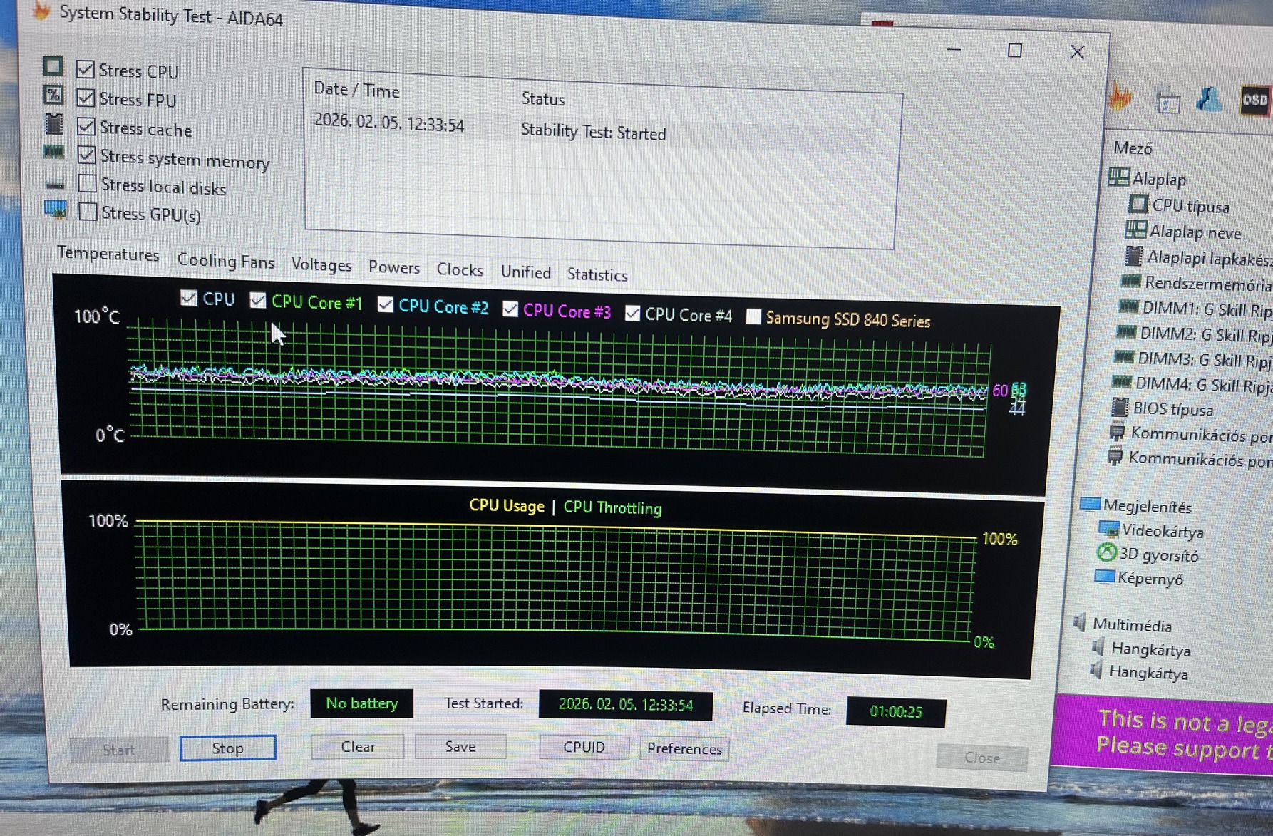 Egy órás stressz teszt kép mellékelve.