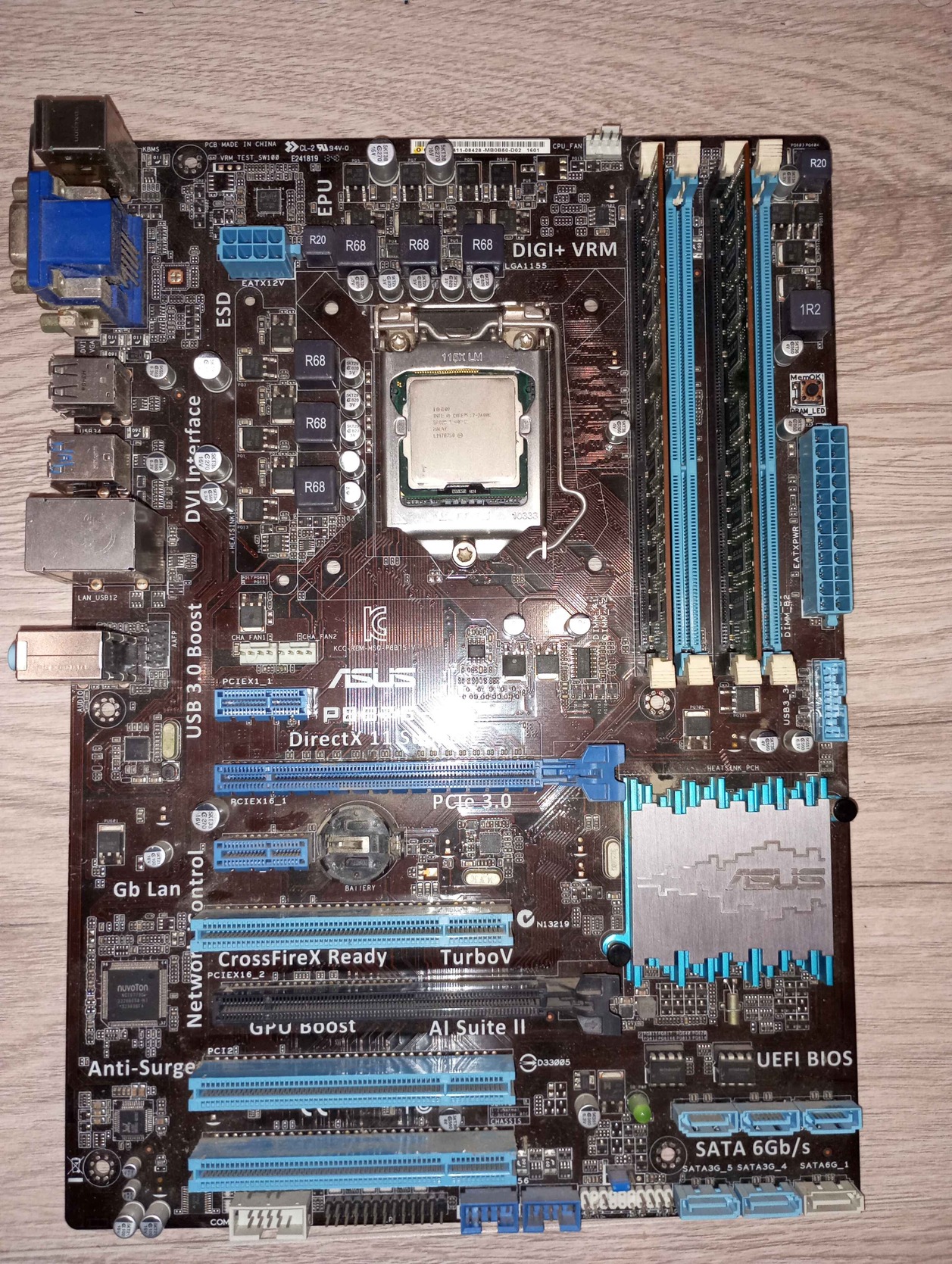 Az alaplap egy ASUS P8B75-V, B75-ös chipsettel, 4 RAM slottal (max: 32GB támogat!), 2x pci-e, 5x SATA II, 1x Sata III