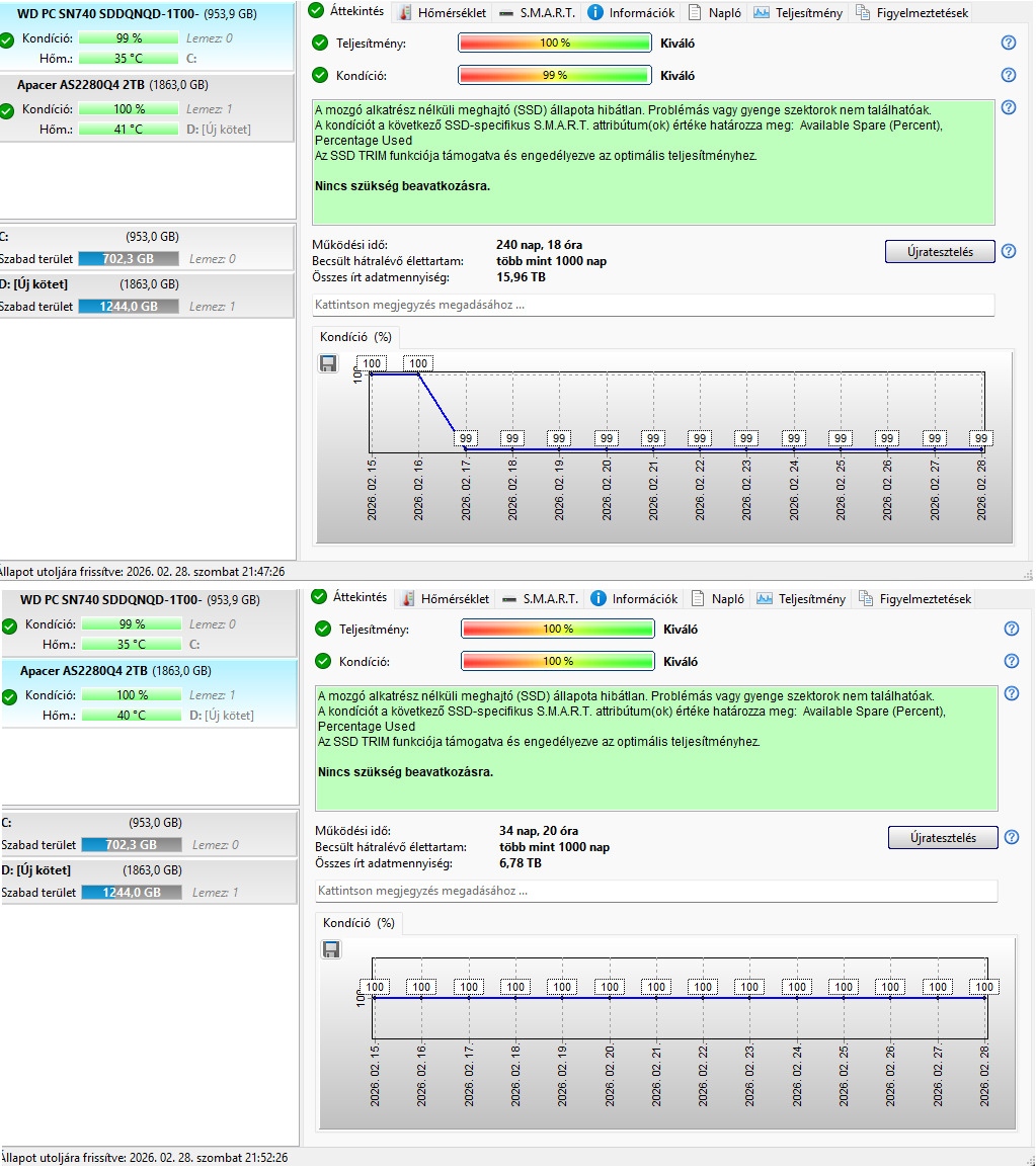 Ssd: Apacer 2tb AS2280Q4X 5500/4400 MB/s - 1200 TBW 2028.08.17 (100%)