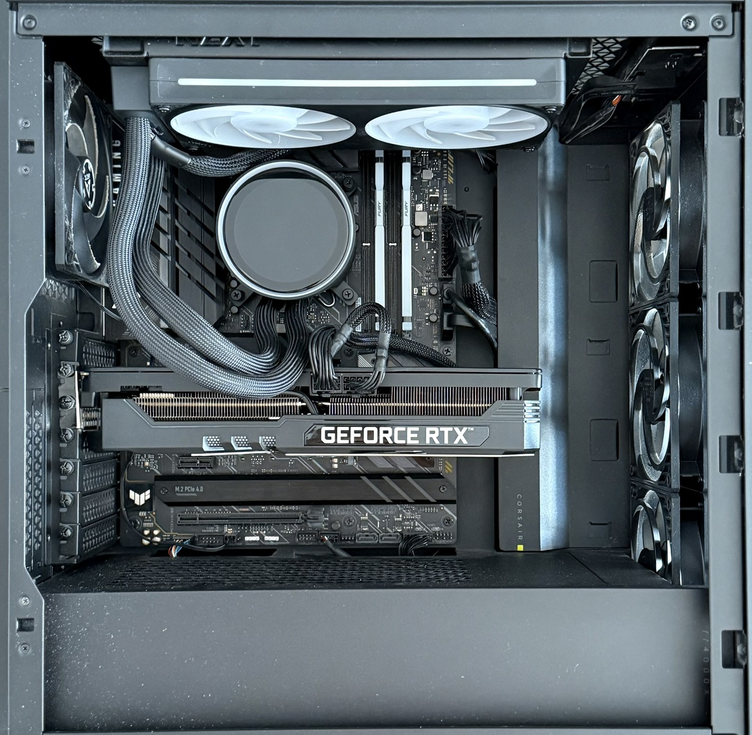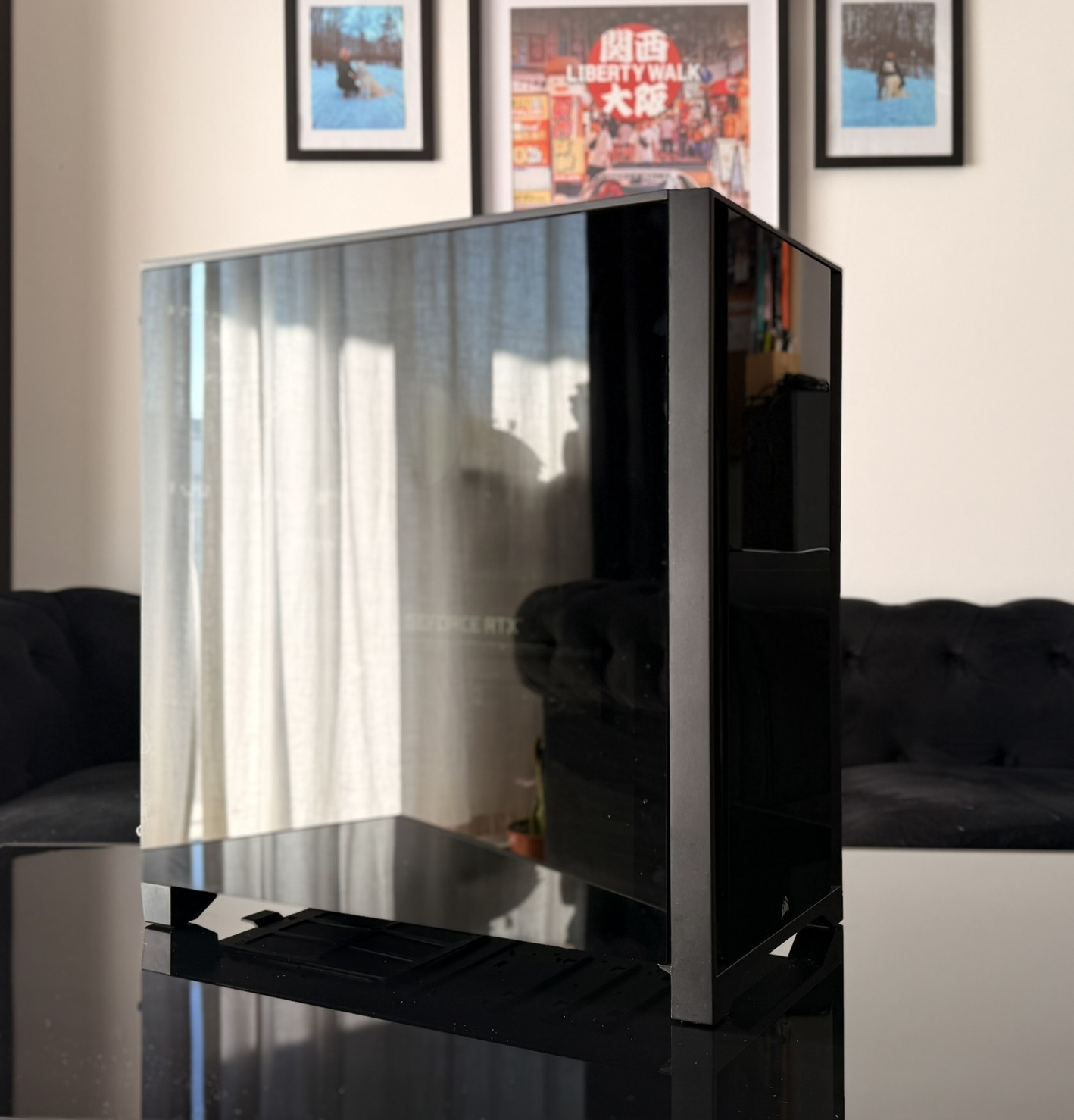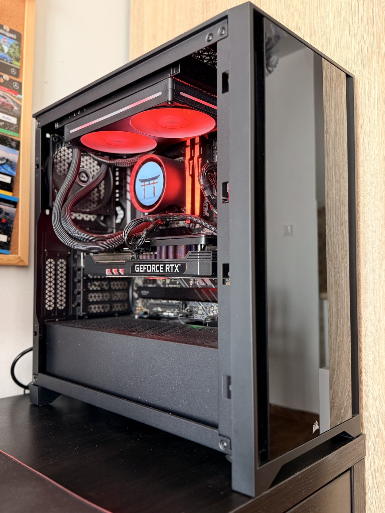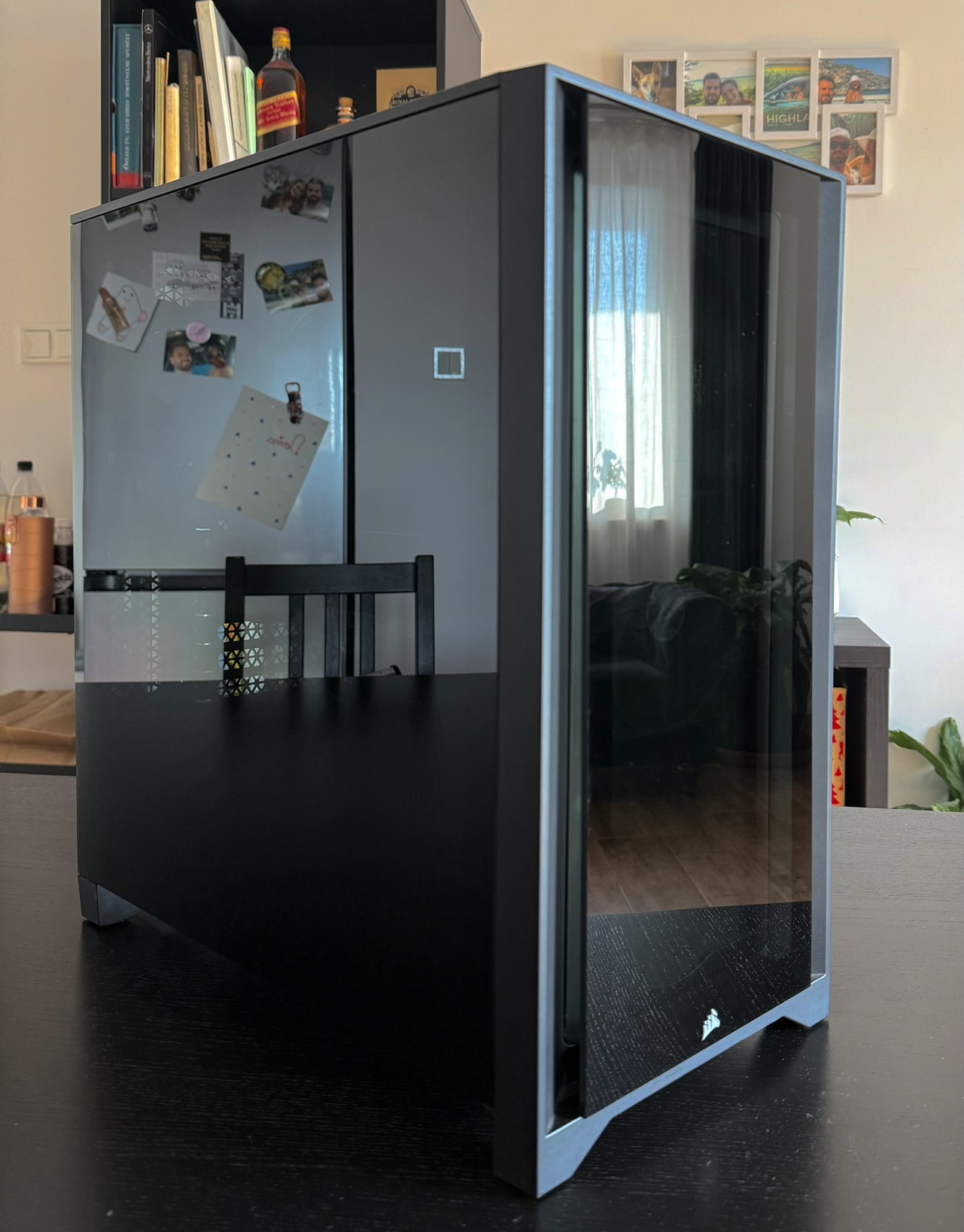 Shadow stealth stílust kedvelem, ezért esett a Corsair Icue-ra a választás, nagyon szép füstüveg van az oldalán, ami betekintést enged, ha világítanak hardverek, de akár teljes sötétségbe is tud borulni, amennyiben kikapcsoljuk az RGB-t