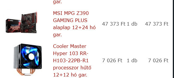 (Elkelt)7 8700k + Kingston 16 GB DDR 4 3200 mhz + MSI z390 Gaming plus alaplap + Coolermaster hyper