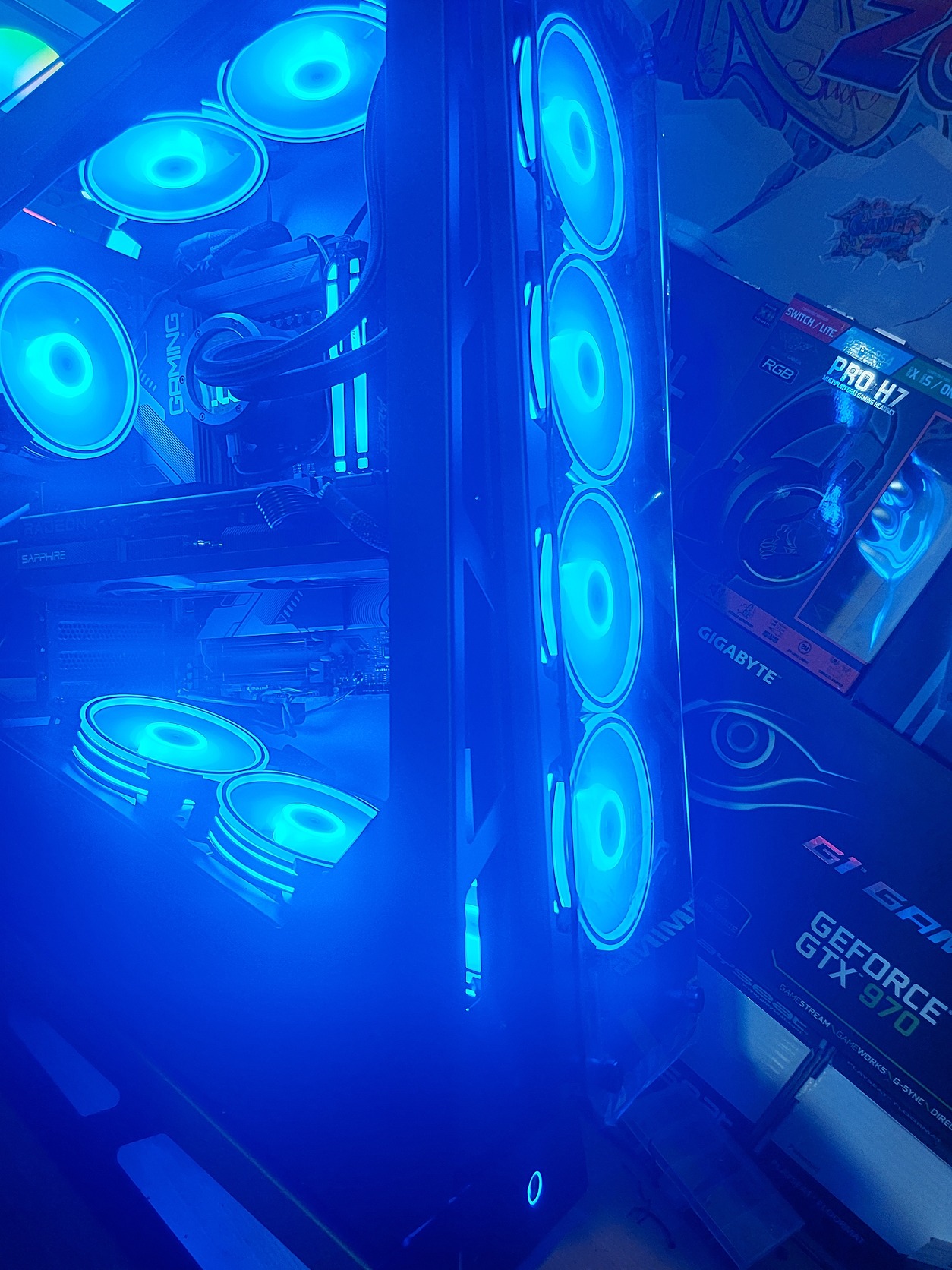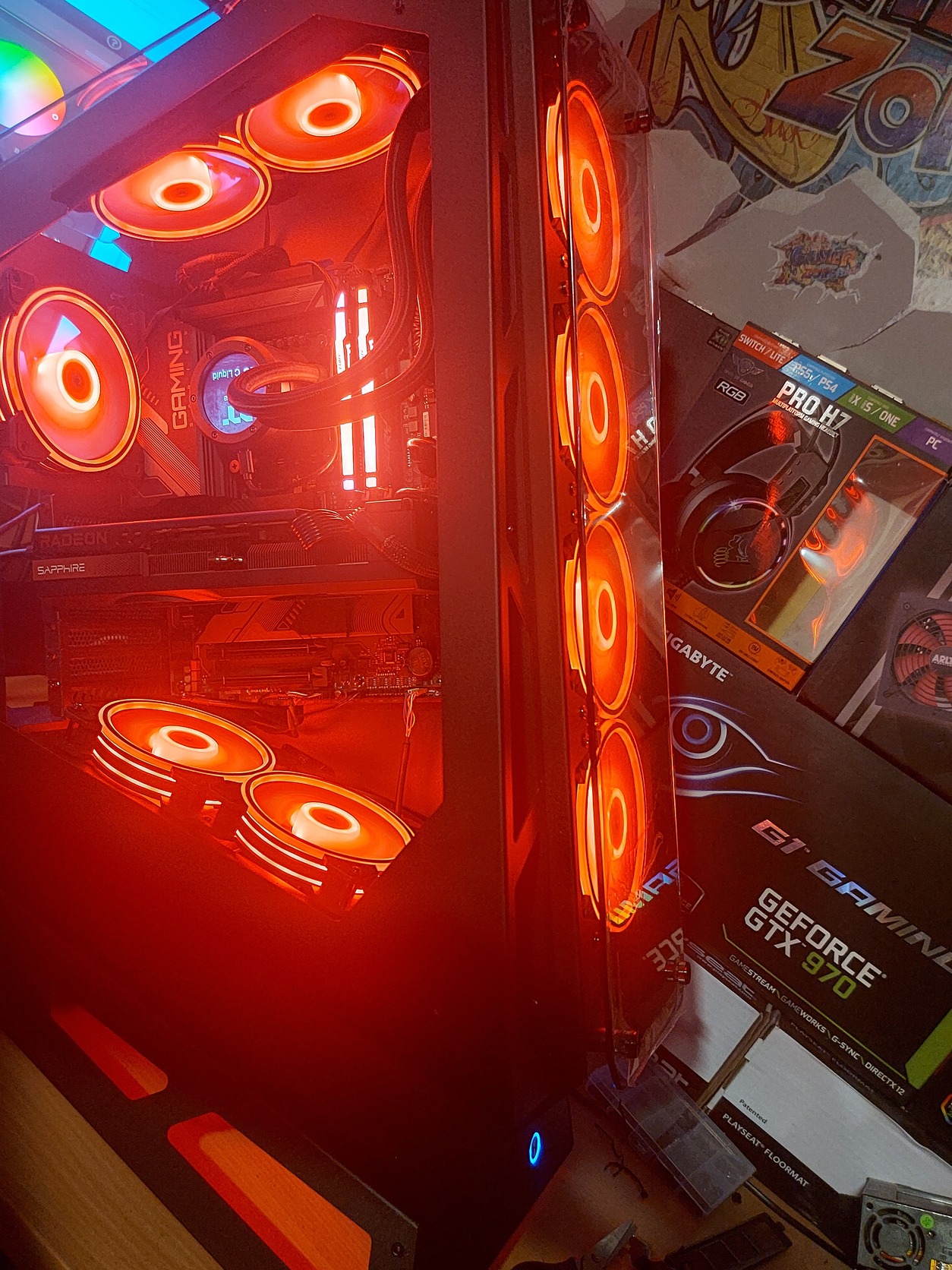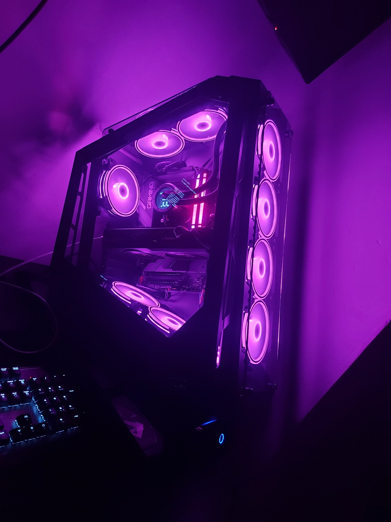 Processzor: Intel Core i9-14900KF Alaplap: Gigabyte Z790 Gaming X Memória: 64GB DDR5 (2×32GB) 6000MHz Videokártya: Sapphire RX 7800 XT Pulse Hűtés: Thermaltake TH360 ARGB Sync V2 – 360mm vízhűtés Tápegység: ASUS ROG Strix 1000W Tárhely: 2× 512GB NVMe SSD Ház: Big Chungus V2!