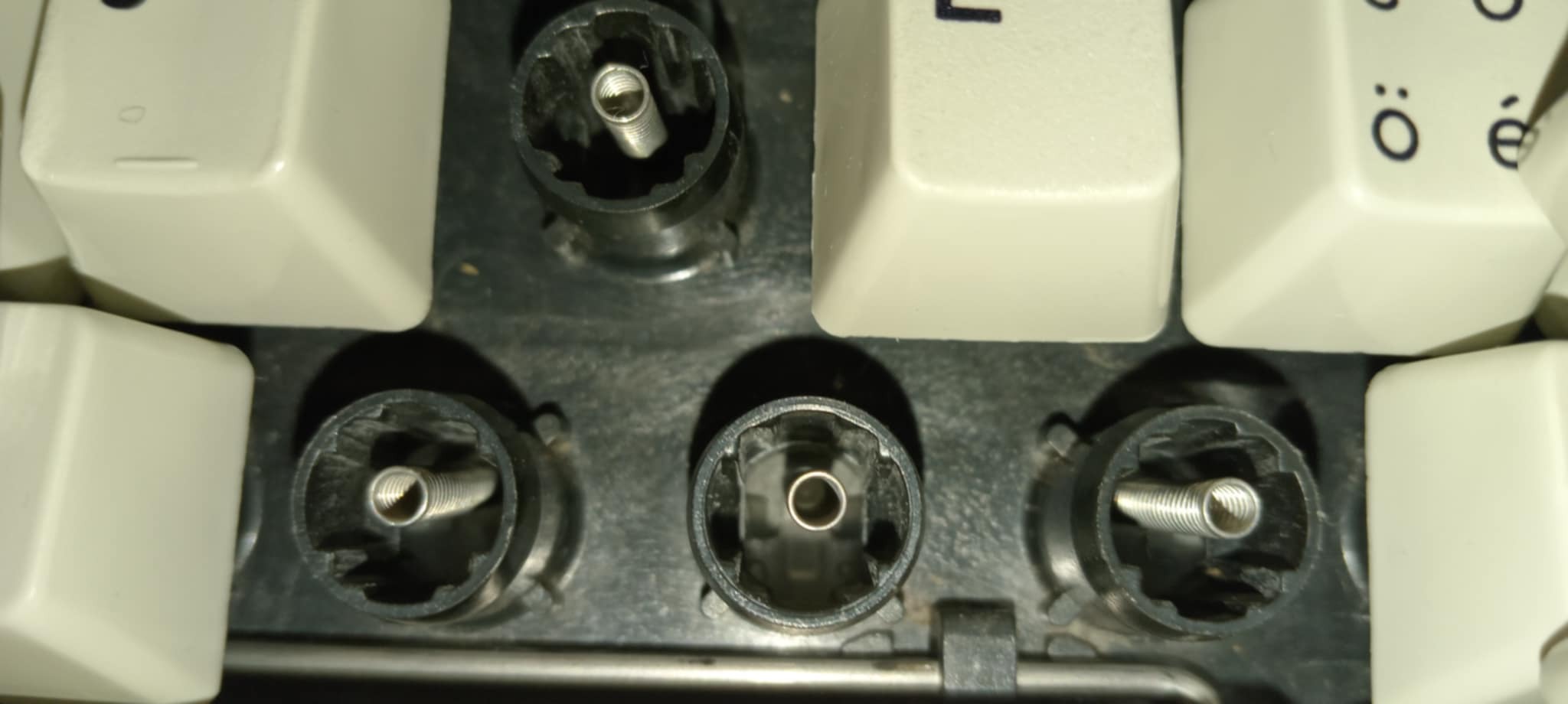 Mi ez a screw mod? Az eredeti formájában a billentyűt egy műanyag tálcára rakják és ebből több ponton műanyag rúdak állnak ki amit ráolvasztanak és így érik el hogy ne mozogjon. Ezek a pontok meggyengűlnek pár évtized után, elkerülhetetlenül. Szóval nekem le kell őket vágni ami megmaradt, majd valamit kezdeni velük. Valaki rájött, hogy ha átfúrjuk ezeket a helyeket és ici pici csavarokat használunk helyette, vissza nyerjük a működést. Nekem így került csak olyan 8 órámba mindennel
