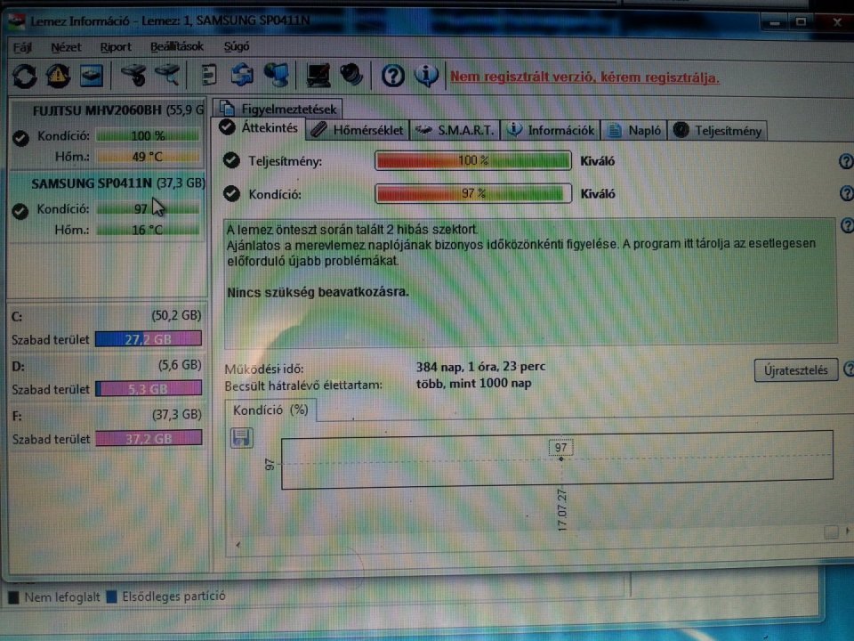40 GB IDE (Samsung SP0411N) 97/100% (384) - 700 ft40 GB IDE (Maxtor Diamondmax Plus 8) 100/100% (929 nap) - 700 Ft