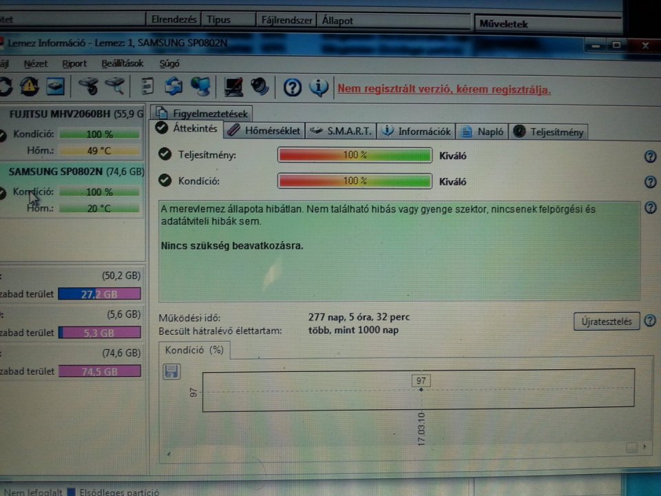 80 GB SATA (Samsung SP0802N) 100/100% (515 nap) - 1500 Ft80 GB SATA (Seagate Barracuda 7200.9) 100/100% (277 nap) - 1500 Ft