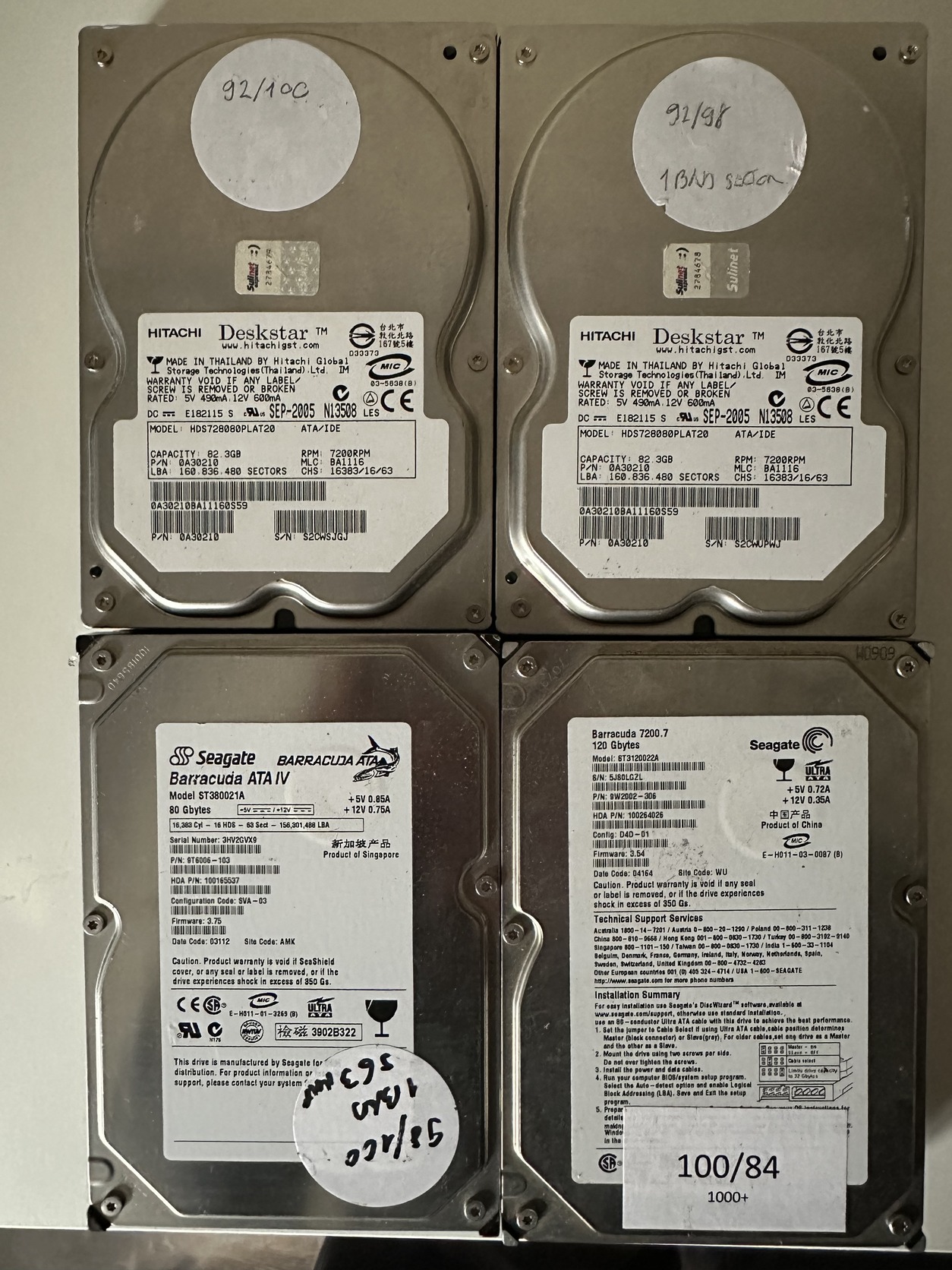 80 GB Hitachi Deskstar model HDS728080PLAT20 /92/98 1 BAD/ 300,-