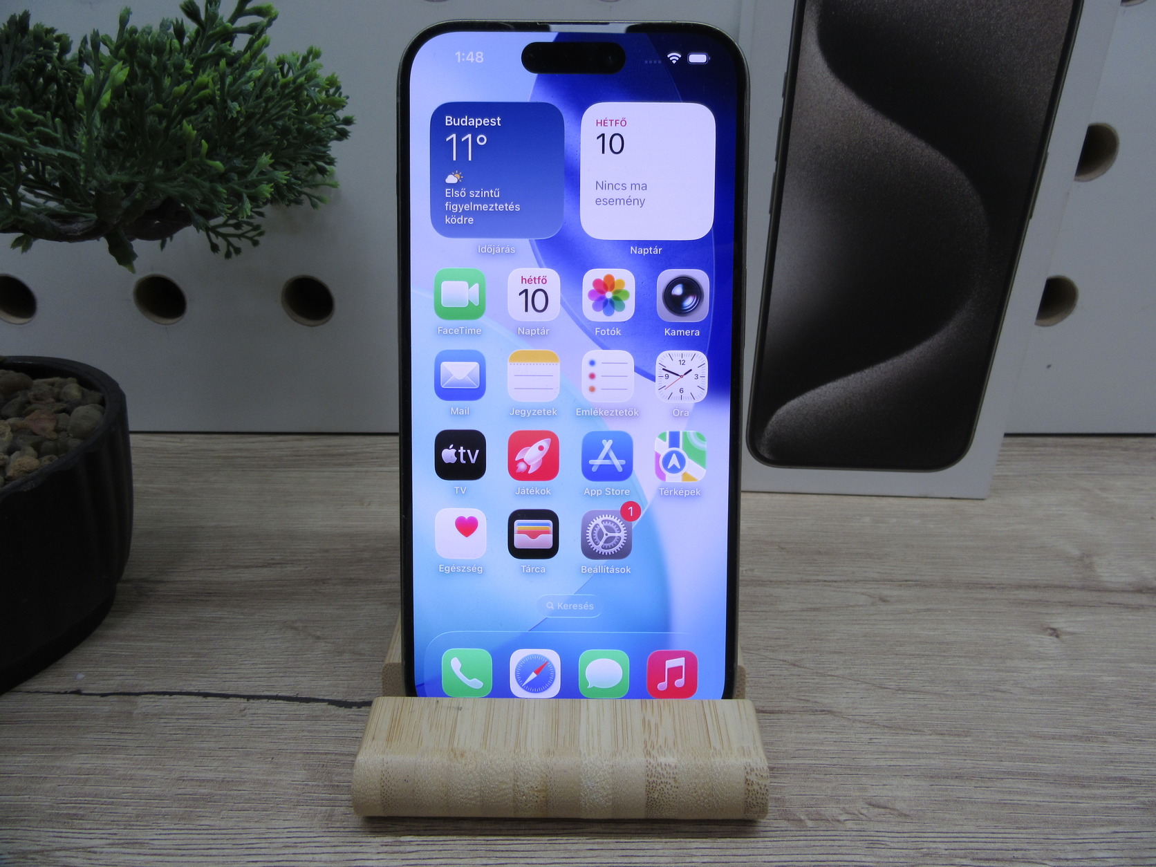 Apple iPhone 15 Pro – Natural Titanium – ProMotion 120 Hz, A17 Pro, USB-C – 128 GB – Használt, megkímélt – 88% akku – 3 hónap garancia