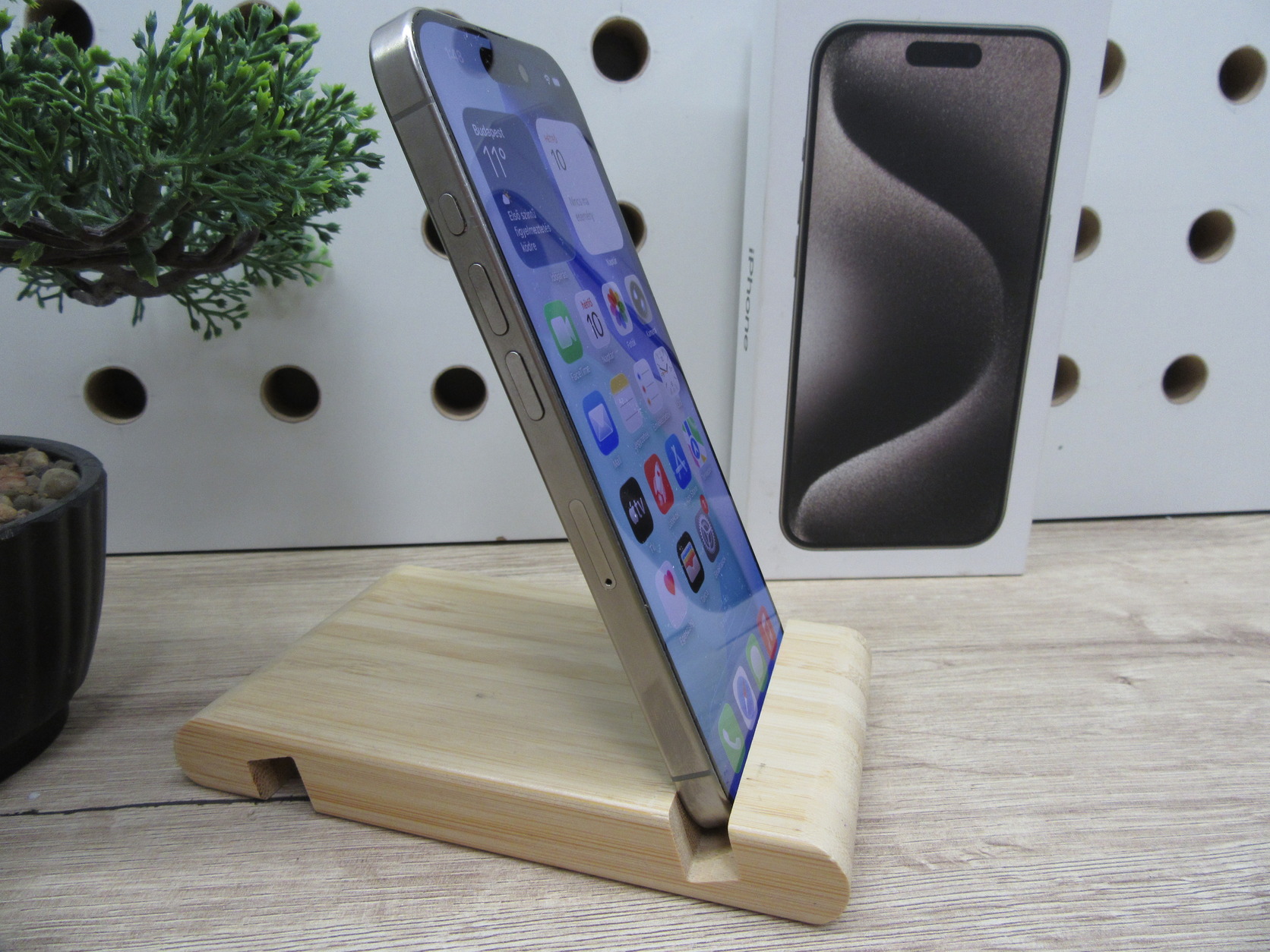 Eladó egy Apple iPhone 15 Pro Natural Titanium színben, használt, megkímélt állapotban.