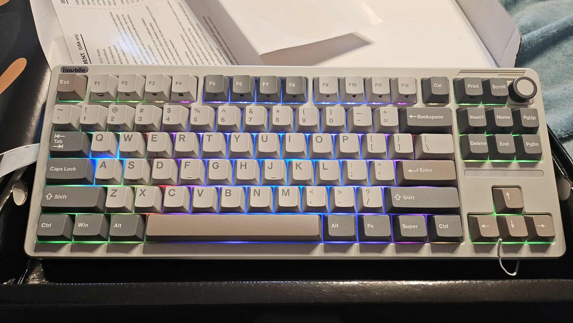 Az iLovBee B87 egy kompakt, 75%-os mechanikus billentyűzet 88 gombos elrendezéssel, amely sokoldalú funkciókat kínál, többek között gasket-mount szerkezetet, forrasztásmentes, forró cserélhető (hot-swappable) kapcsolókat, testreszabható RGB háttérvilágítást, változtatható (cserélhető) fém vagy gomb nélküli kivitelű hangerő-szabályzót, valamint 2.4G, Bluetooth és vezetékes csatlakozási módokat. A billentyűzet kiváló gépelési és játékélményt biztosít a többrétegű hangcsillapító betéteknek és a teljes POM anyagú LY tengelynek köszönhetően.