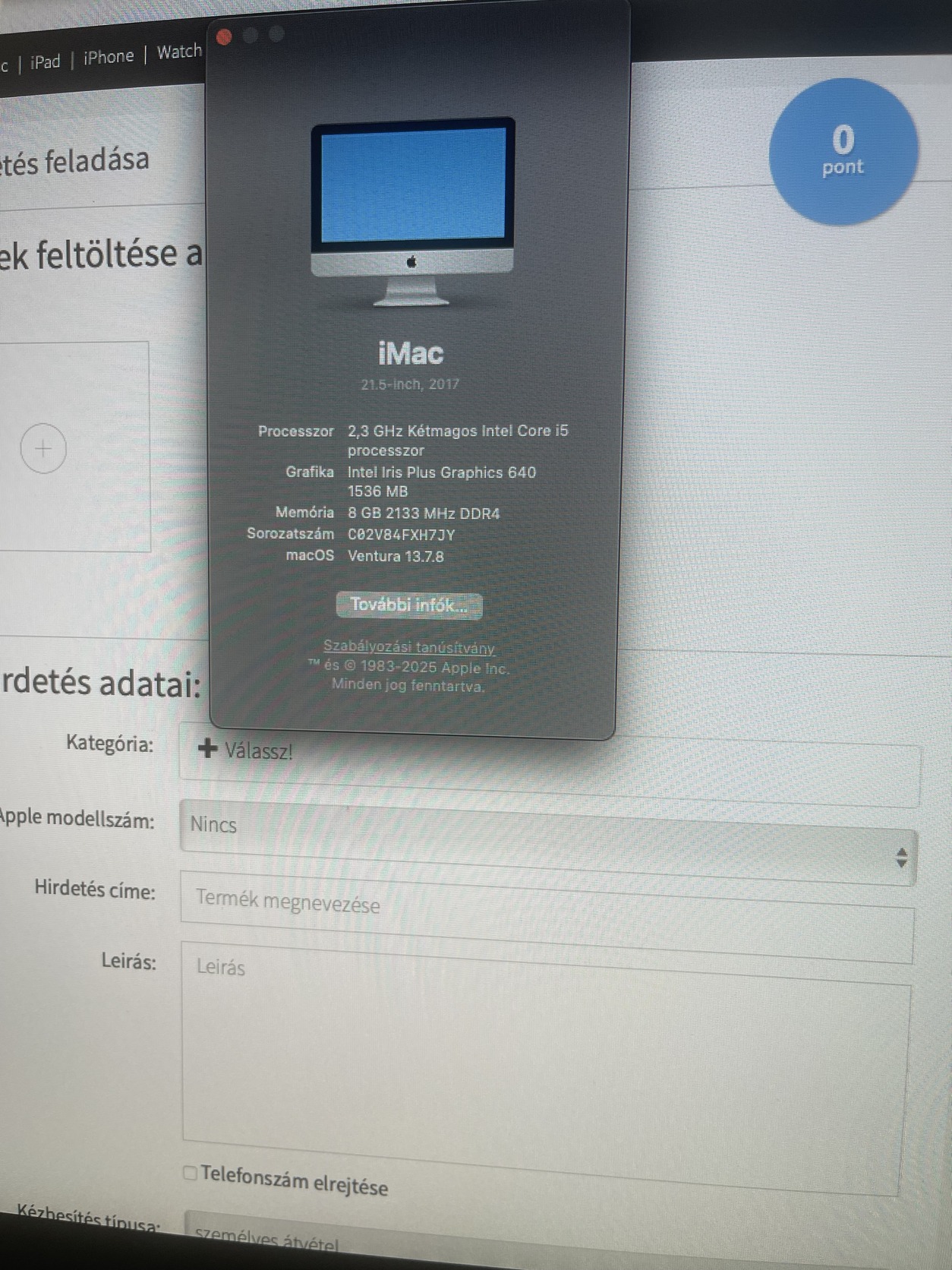 Eladó a képen látható iMac gyári tartozékaival, dobozával. A gépet egy irodai dolgozó használta a munkahelyén ezért rendkívül megkímélt állapotú nem volt nyúzva. Karc mentes a kijelző, nem pixelhibás, nem lassú, Nagy előnye, hogy a gép 1TB SSD verziós. Egy problémája van , hogy a memória kártya foglalat nem olvas.