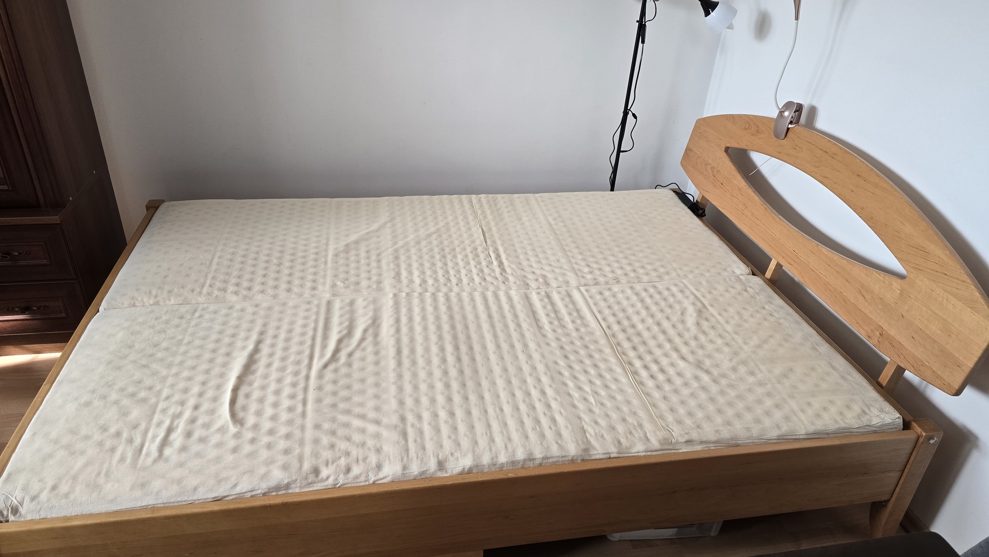 Nemdohányzó lakásból, lapraszerelhető ágy ingyen elvihető. Fedőmatraccal használtuk (az nem jár hozzá), a saját matraca jó állapotú. A keretet 1-2 csavarral meg kellett szorítani, mert kicsit nyikorgott, azóta nincs probléma vele. A mérete 200*140 cm.