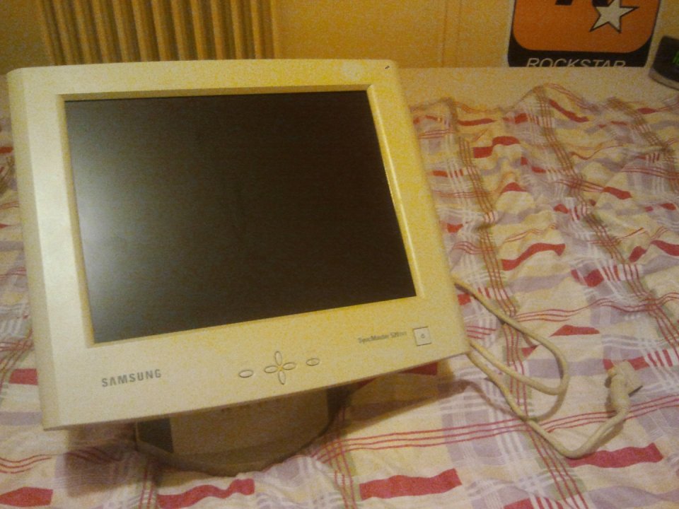 Samsung SyncMaster 520 TFT (Kávája a képen látható módon törtött, a kijelzője karc mentes, de: van egy piros pixelhiba, és játék-film alatt alul középen felfelé egy 3-4cm magas 1mm vastag kék pixelcsík megjelenik. Tápkábelem sajnos nincs hozzá.)