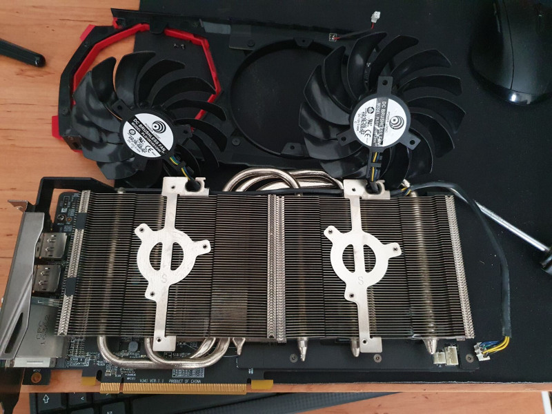 Eladó a címben említett használt VGA. A videókártya nagyon szép állapotban van, nem csörög-zörög, ki van takarítva, viszont hibás! A driver települ, a játékok elindulnak, viszont szaggatnak, illetve a Furmark is kifagy. Dirt3 alatt FullHD felbontáson High/Normal beállításokkal például egész játszható, viszont biztos, hogy a VGA nem 100%-os, a hiba nagyobb terhelésnél jelentkezik, kérlek ennekk tudatában érdeklődj! A csavarmatrica még sértetlen, szétszedve nem volt, takarításnál csak a ventilátorokat szedtem le! Személyesen átvenni egyeztetés után Mezőladányban, Kisvárdán, esetleg Nyíregyházán lehet. Egyéb esetben utalás után Foxposttal tudom küldeni, melynek költsége benne van a vételárban!