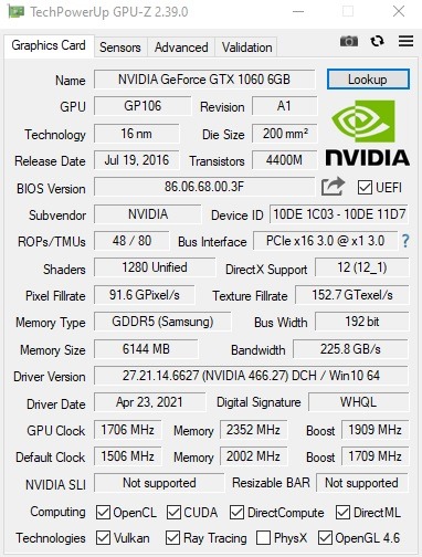 Eladó hibátlan állapotban egy Inno 3D Nvidia GeForce GTX 1060 6GB videókártya. Egy ventilátoros, nagyon halk kártya. Játék alatt is szinte teljesen hangtalan. Én két napot bányásztam vele, de tökéletesen lehet mellette aludni és hőt sem generál, viszont számomra nem éri meg ezzel vacakolni és inkább felhagytam a bányászattal. Korábban komplett gép alkatrészeként vásárolt. Csupán kategória váltás miatt eladó (6700 XT). Garancia értelem szerűen nincs rá, dobozát már sajnos nem találtam.