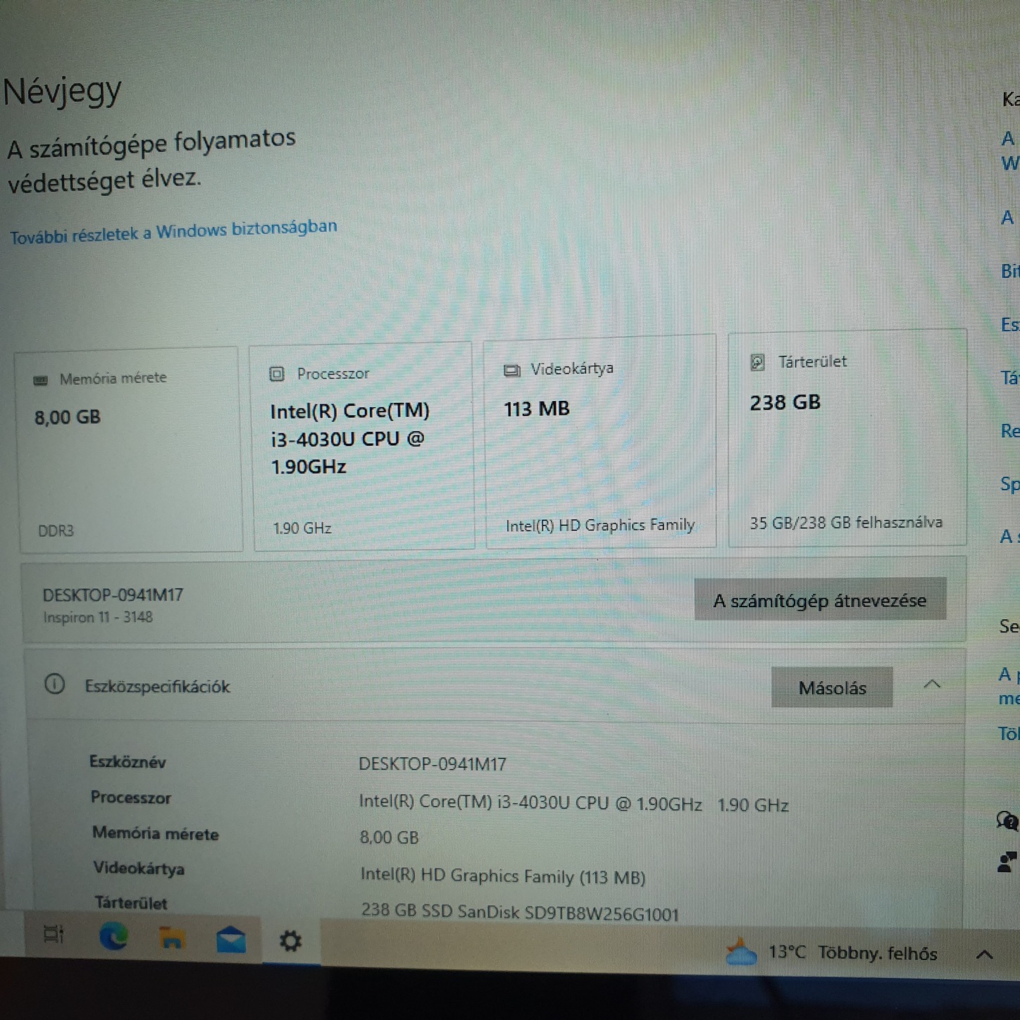 Videokártya: Intel HD
